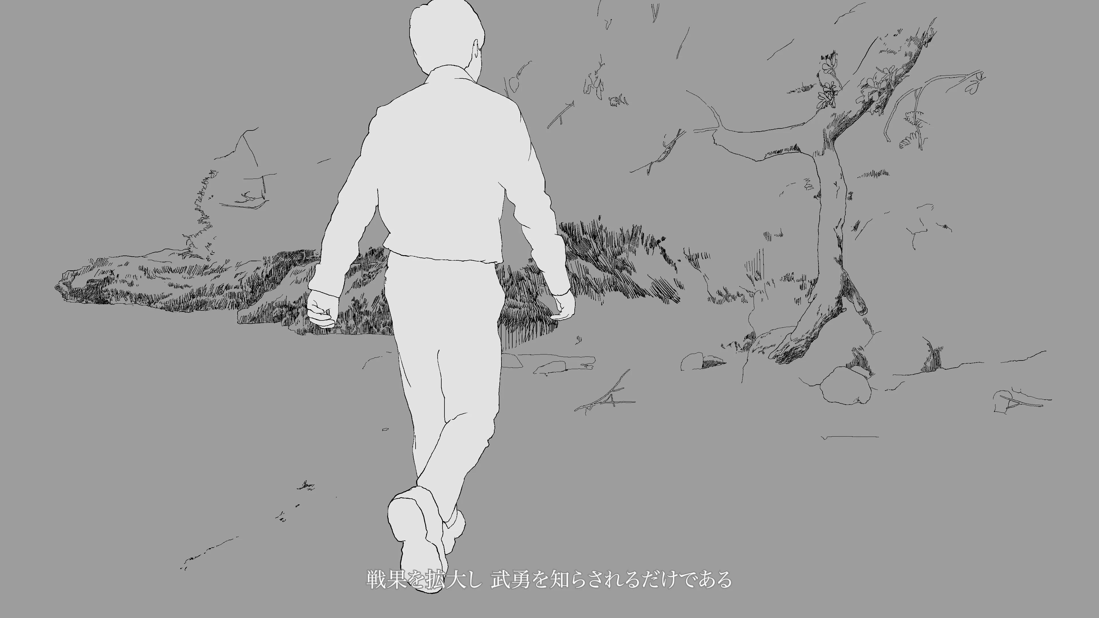 神奈川県藤沢市でのレジデンスに参加した際に制作され、「Hiroshima - Inside/Outside」展でも展示されたた映像インスタレーション作品《祖父の手を持つ》(*4)は、三浦半島にある特攻兵器「震洋」基地跡へのリサーチと、旧海軍に所属し特攻に志願していた平井自身の祖父の手記を重ね合わせたものである。