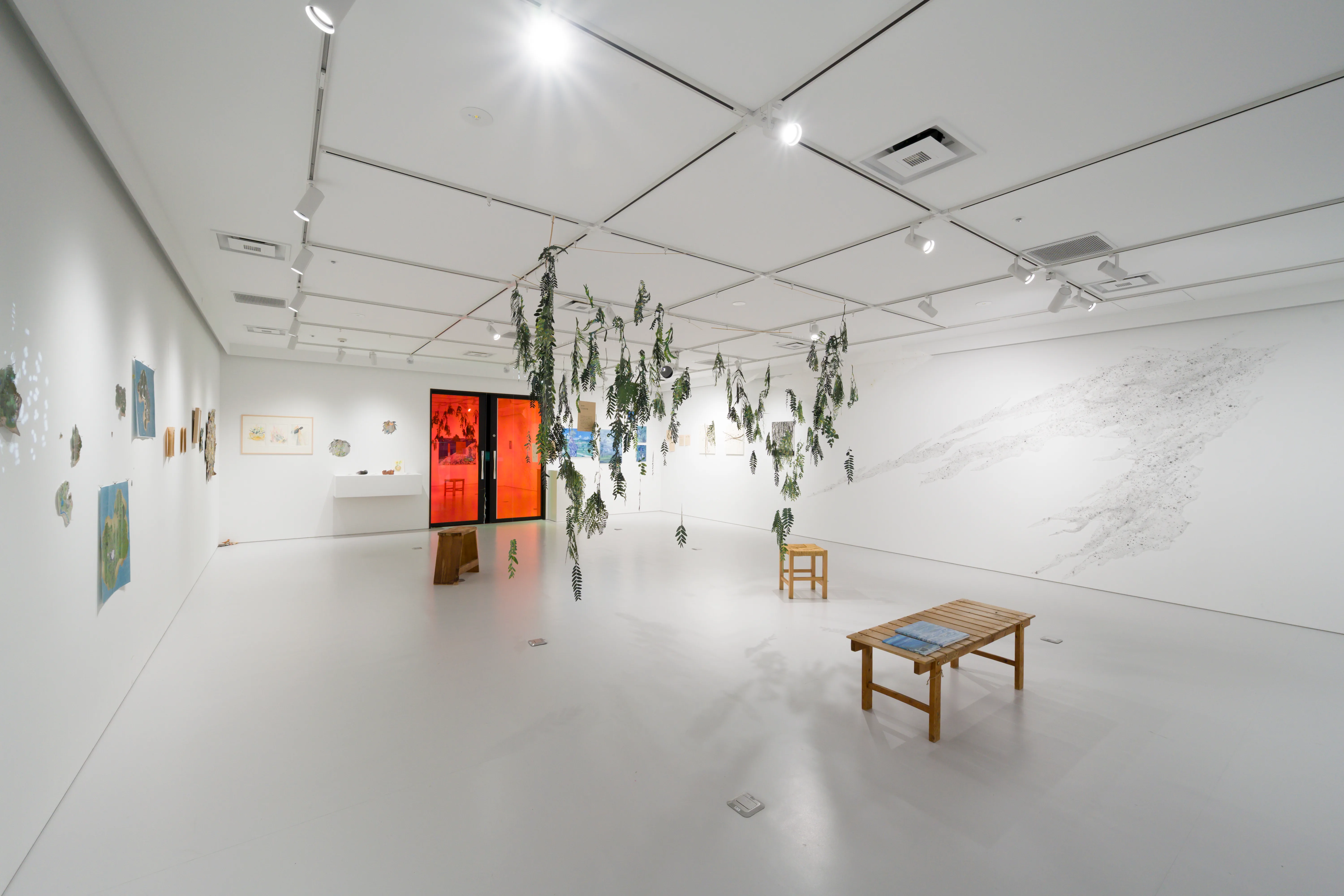 山本が大学時代に専攻していた文化地理学の視点が現れる、土地の植物の写真や映像を組み合わせて架空の島をつくる渡辺真悠の展示や、コロナ禍のなかで注目されたマスクに焦点を当て、「マスクに恋をしたアイドル」の視点からマスクに向けられた社会的イメージを描いた美音異星人の異色のインスタレーション展示「恋するマスク=変するマスク」など、オルタナティヴ・スペースとしてのタメンタイのプログラムはユニークなものとなっている。