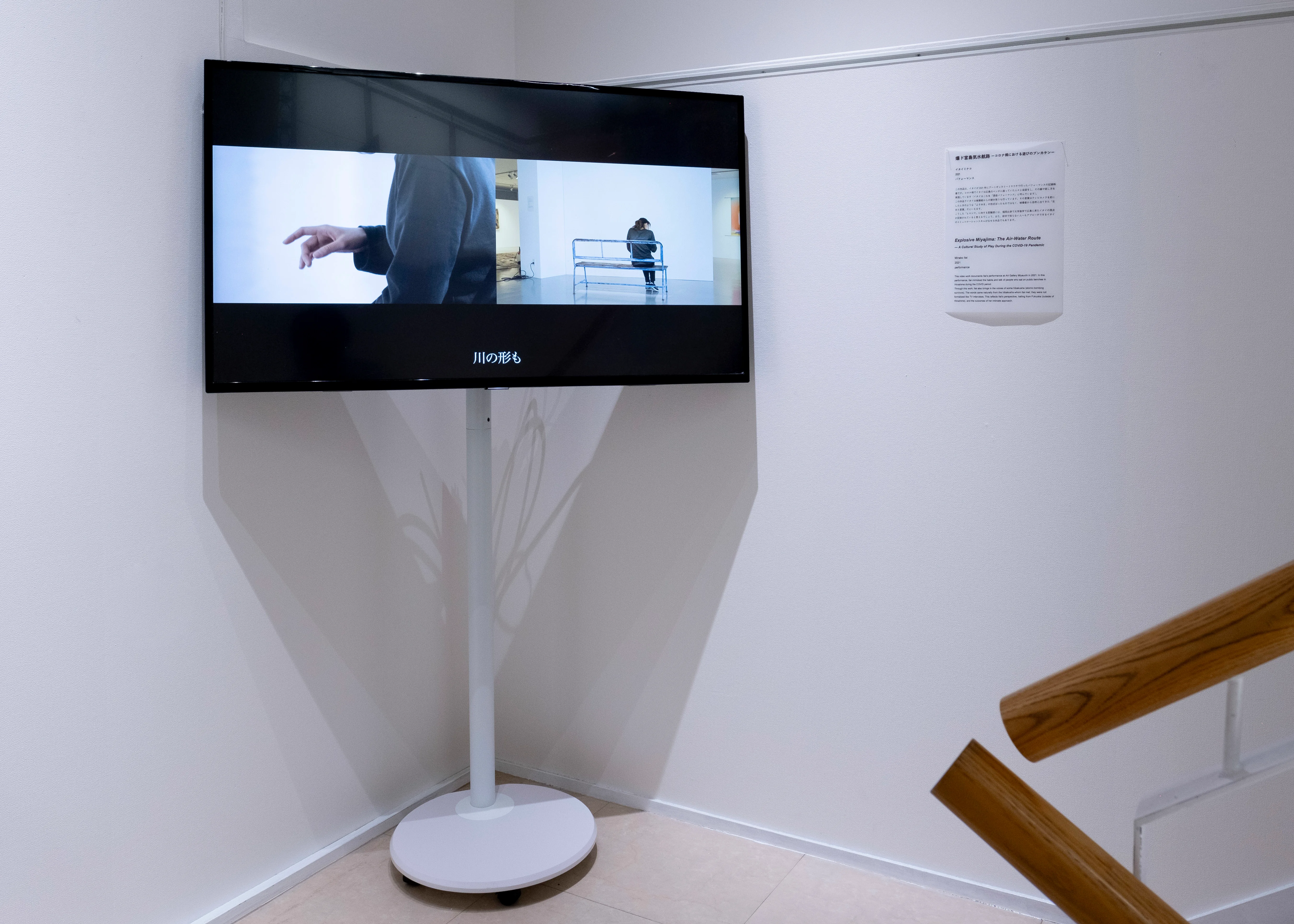 イタイが得意とするスタイルのひとつは本人が「憑依芸」と呼ぶパフォーマンス作品で、イタイが特定の人物になりきってその人の語りを再現するというものだが、それはたんなるモノマネ芸に収まらず、証言の伝えていくための新たな方法にもなっている。《爆ド宮島汽水航路ーコロナ禍における遊びのブンカケンー》は、広島県廿日市市宮内にあるアートギャラリーミヤウチでイタイが2021年に行ったパフォーマンスであり(*7)、その記録映像を映像作品とした同名の作品は「Hiroshima I/O」展でも展示された。
