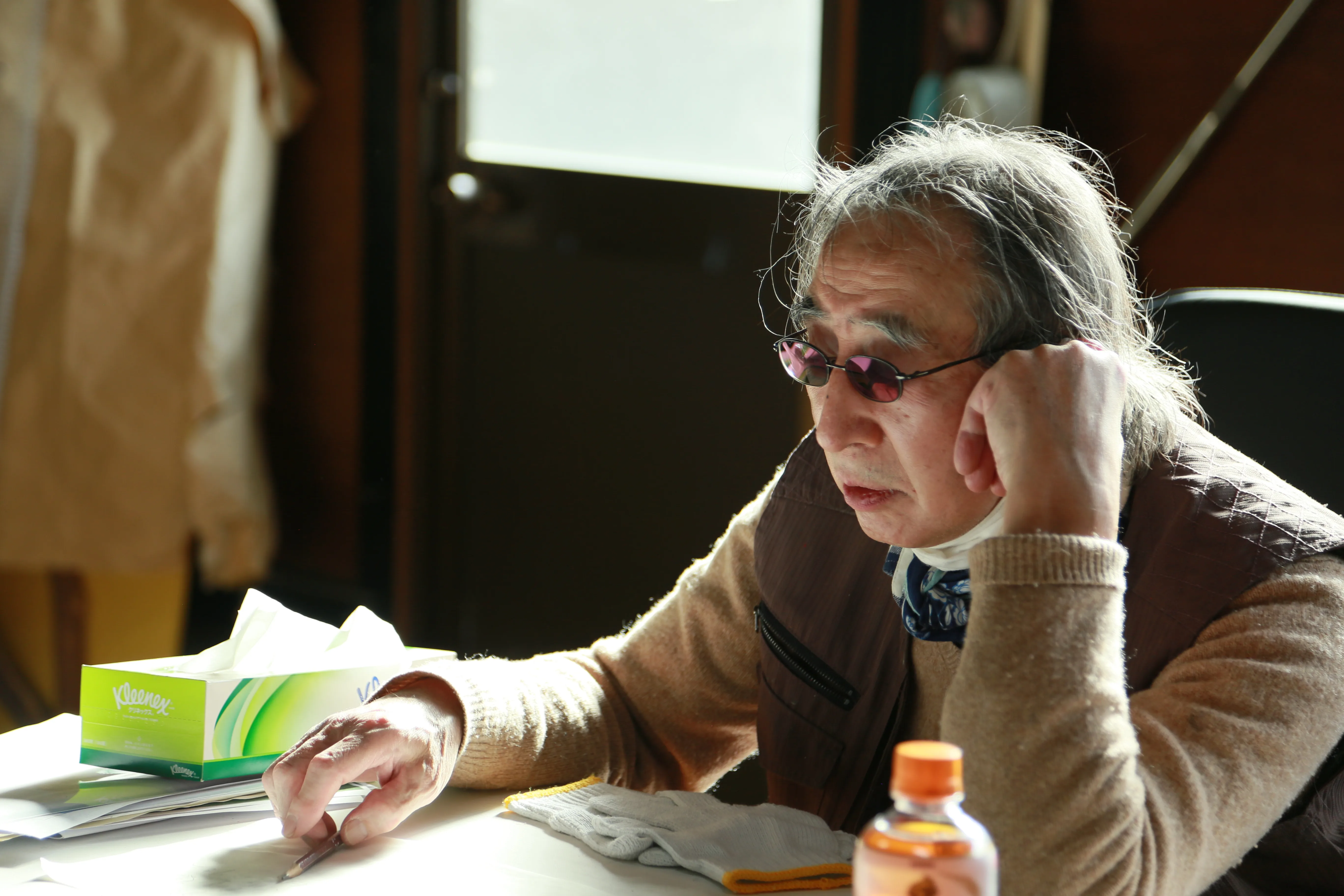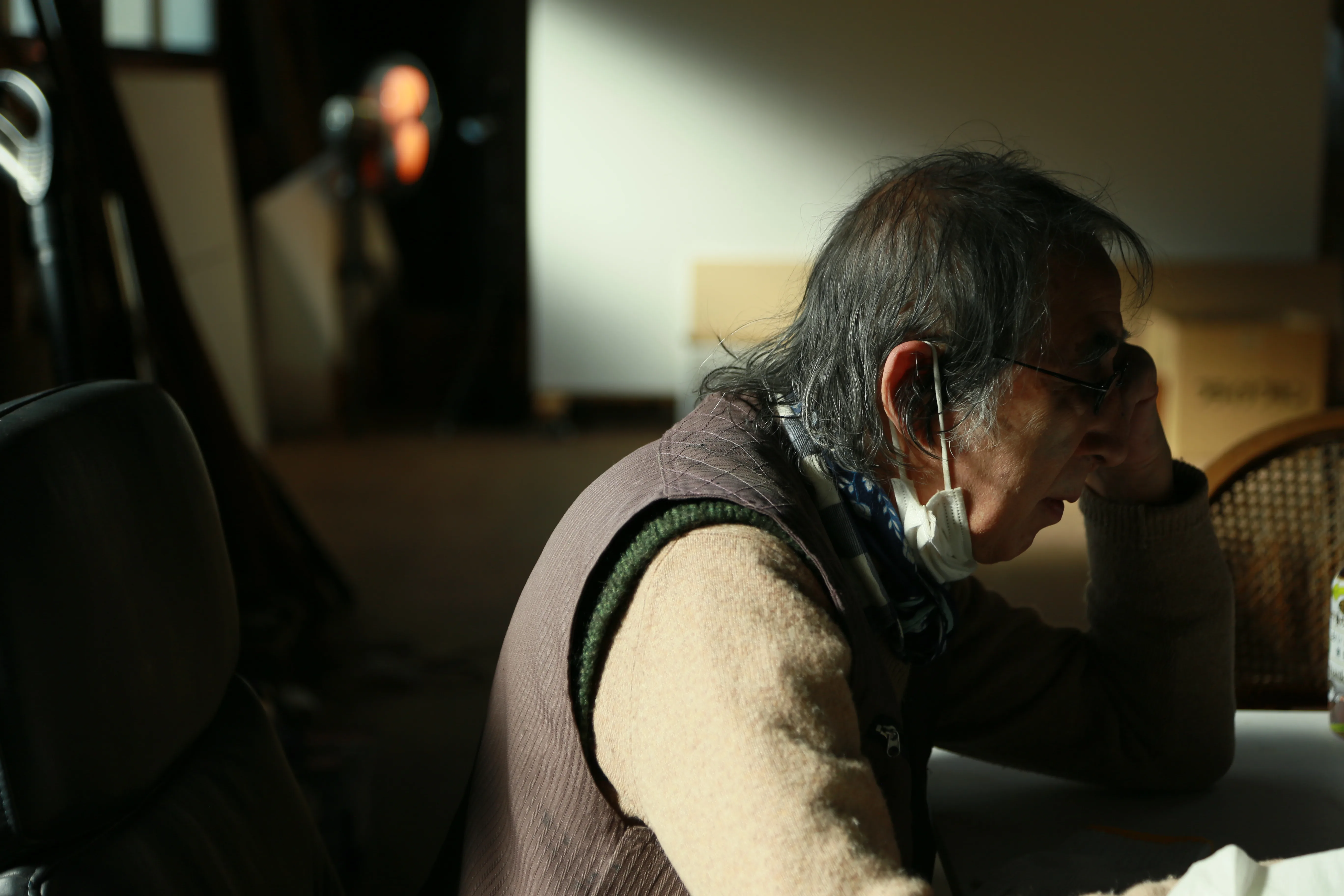 菅木志雄。静岡県伊東市のアトリエにて 撮影:編集部