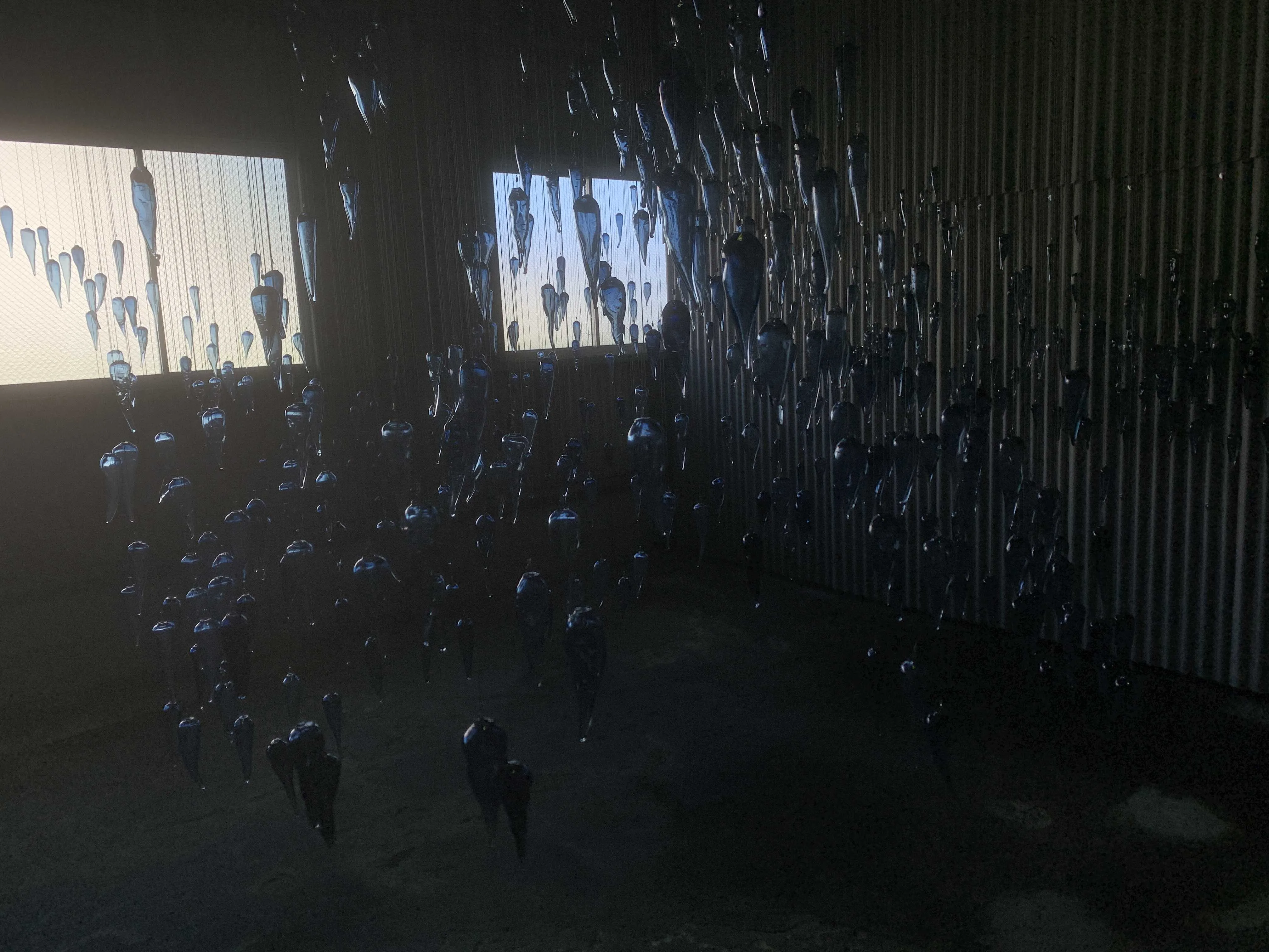 東海道沿いを道なりに進んできたこれまでのルートから外れ、線路と川を挟んだ北に向かうと、株式会社張正で展示されているイワニ・スケース(豪州)の《オーフォード・ネス》を見ることができる。豪州の先住民族にルーツをもつスケースは、先住民の主食であるヤム芋のかたちにかたどったガラスを無数に飾り、植民地主義や戦争といった人間の過ちに対する洞察を示している。