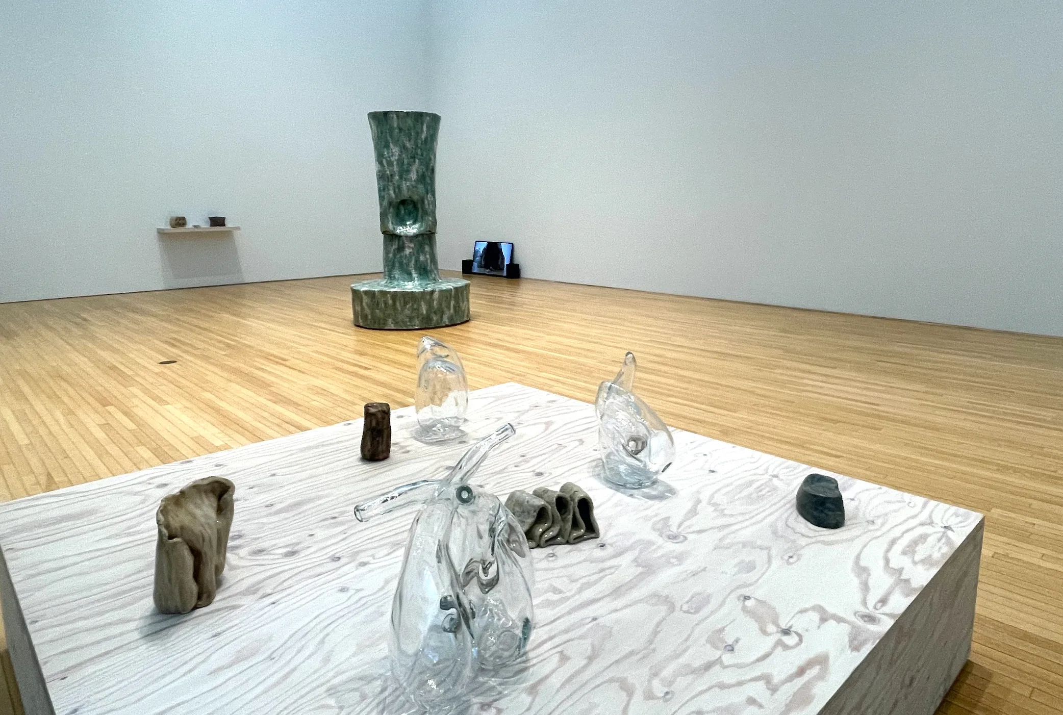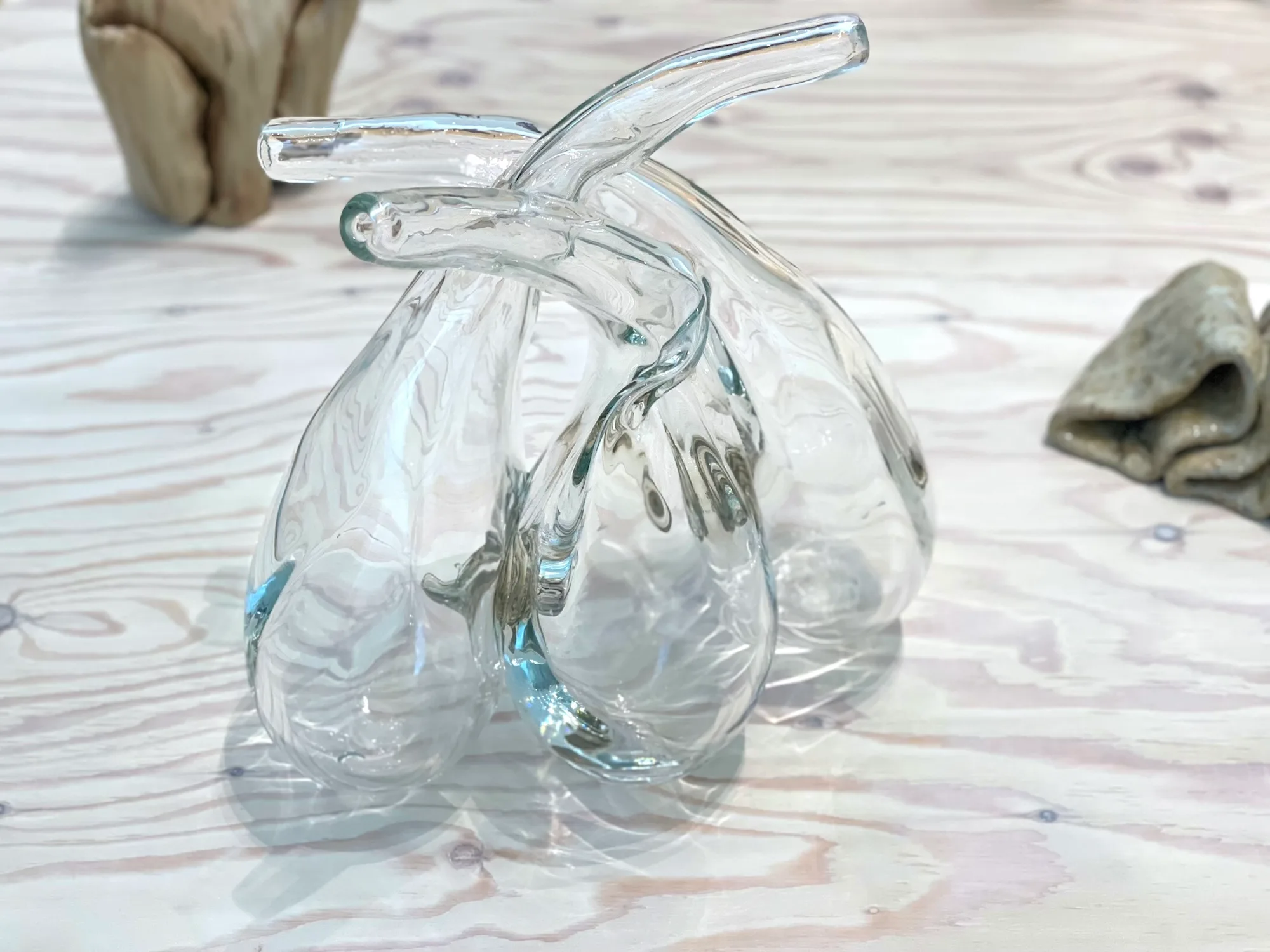 スケールアップした作品群に目が奪われるが、その傍ら、アトリエで制作された小品のシリーズ《卓上の幽霊》は、西條が日常に注いだ視点が伺え、見ていて飽きない。初めて挑戦したガラス作品は、自ら息を吹き込むという工程を経た、これも身体性の強い作品で、生々しい。