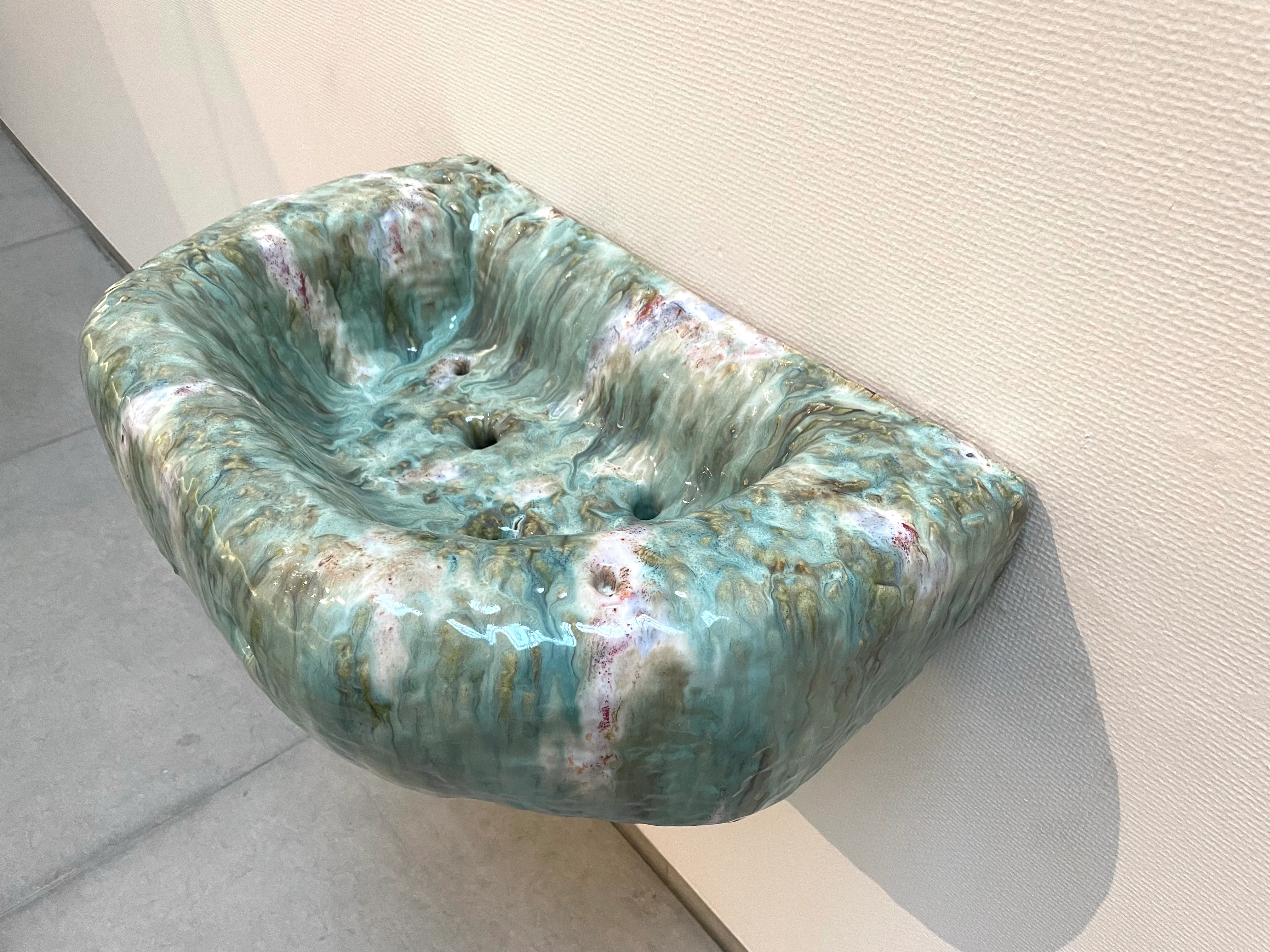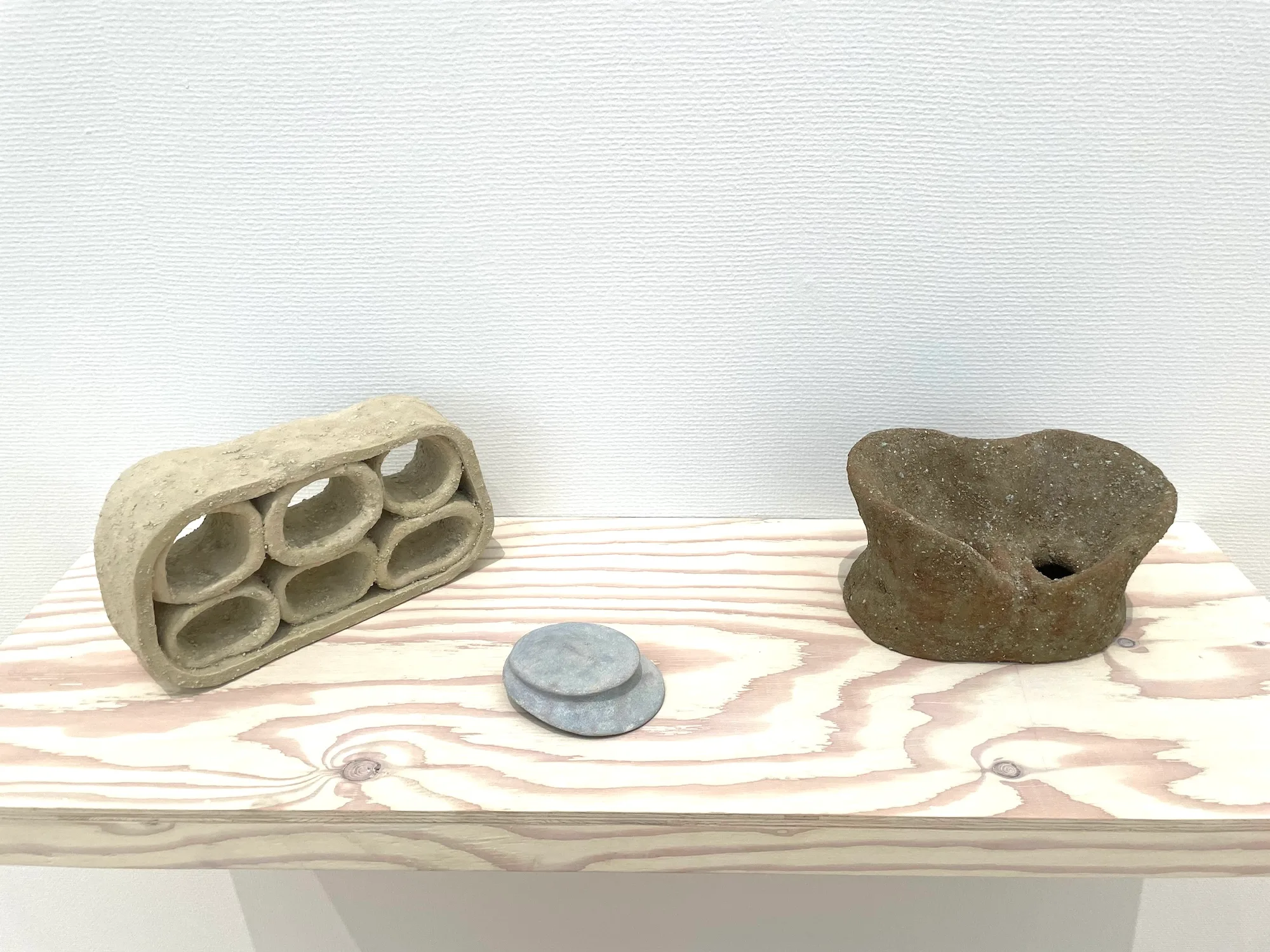 「自身の身体を実感し世界とのコミュニケーションの在り方を探りながら創作をしている」と語る西條だが、作品は同時に、近現代の陶芸に伴う既成概念を幾度も反転させる。そのひとつが、作品に開いた口に見られる。