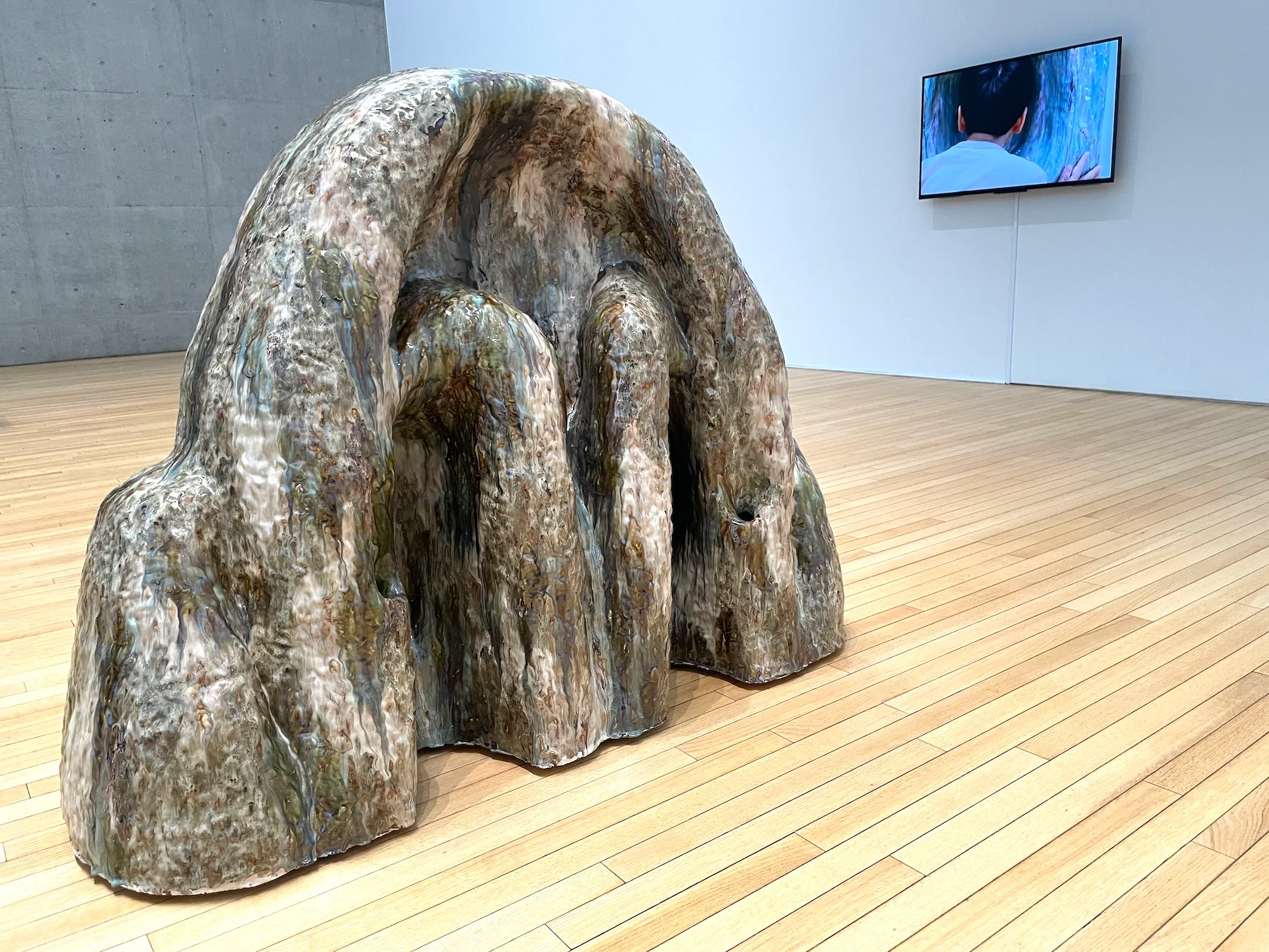 作品は、鑑賞者とのコンタクトを生み出す装置としても機能する。《The melting Laborers》では、洞窟のように開いた複数の穴が内部でつながっている。手を差し入れれば、自分の手が作品内部に触れ、作品は手と出会い、また、複数人で手を入れれば、中で誰かの手が接触する体験があるだろう。(2月16日に、作品に触れられるイベント「ふれあい展示室〜作品からはじまるアレコレ!」を開催予定)