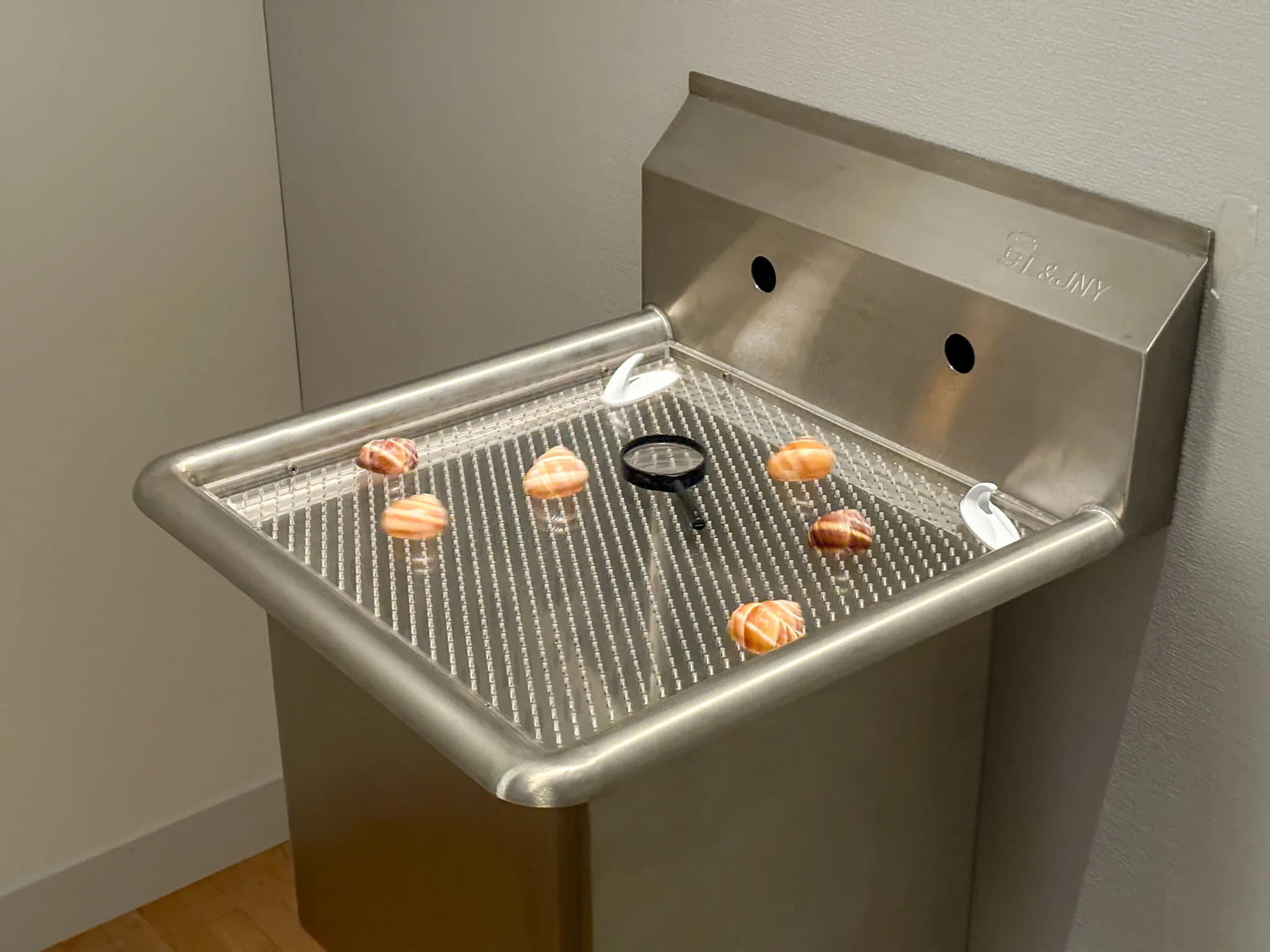 自ら制作したインスタレーション内にて、私小説的な語りを交えた即興パフォーマンスを行うスタイルで知られる笹本だが、近年は、パフォーマンスを含まないキネティック(動的)な作品を発表する機会も増加している。たとえば、2022年のヴェネチア・ビエンナーレに出品された《Sink or Float》はその代表例であり、本展では、同作品と同時期に作られた別バージョン《Social Sink Microcosm(流し台で社会の縮図)》(2022)が紹介されている。