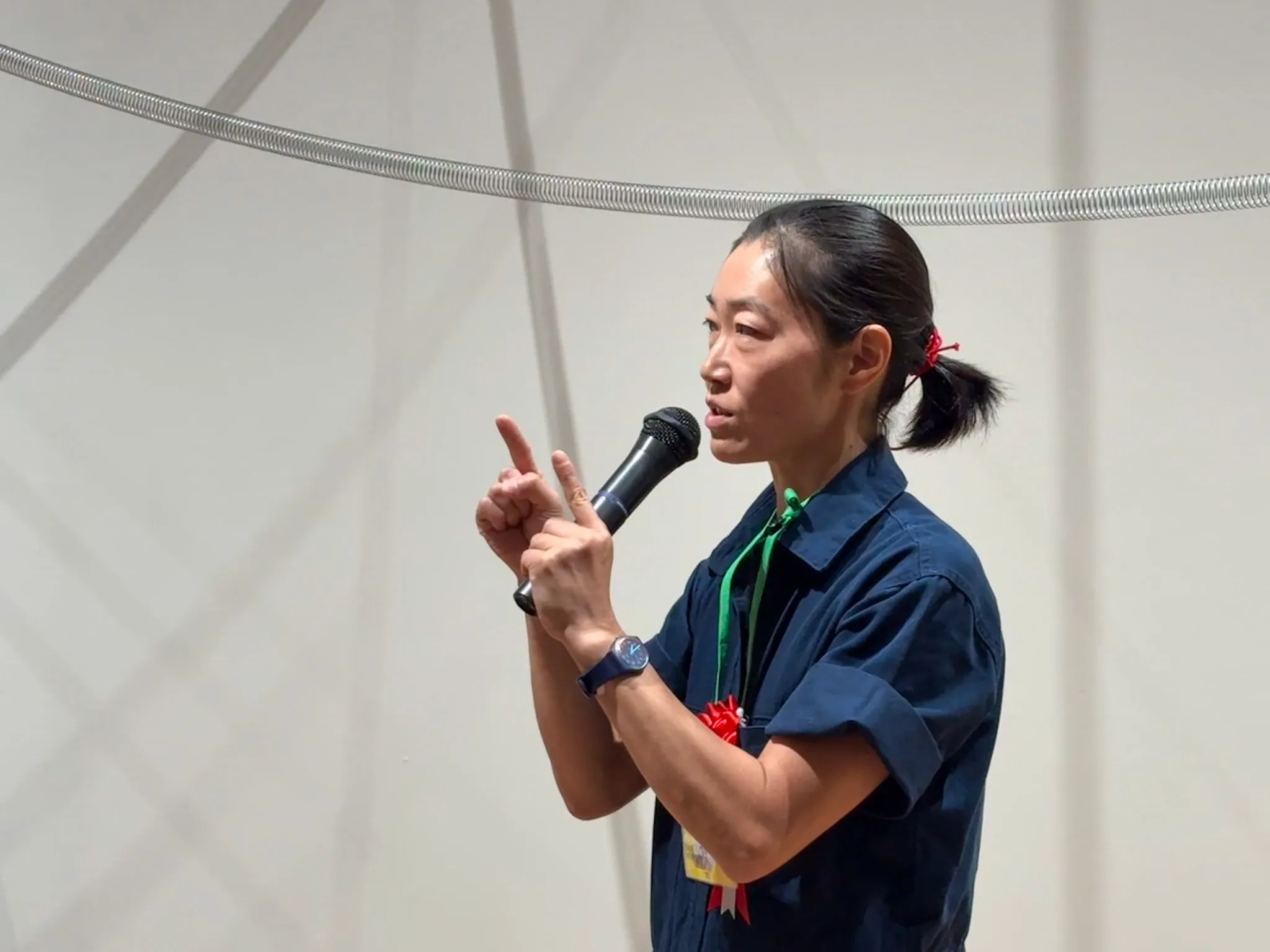 「パフォーマンスとインスタレーションは、その時の気分や展示する場所によって(組み立て方が)変わります。劇場ならモノよりも身体が先行することもありますし、展覧会の場合はモノに(作品のメッセージを伝えることを)任せてしまうこともある。《Sounding Lines(測深線)》はバネの動きが重要な作品なので、私のパフォーマンスは注釈のような役割を果たしますが、《Wrong Happy Hour(誤りハッピーアワー)》のようにインスタレーションが舞台装置のような役割を果たすこともある。色々な方法があって、それを楽しみながら作品を作っているので、(今回パフォーマンスを行うときは)どうしようかなと思っています」(笹本)