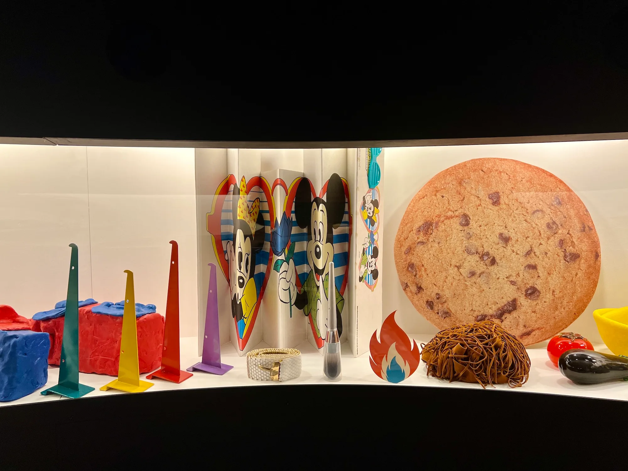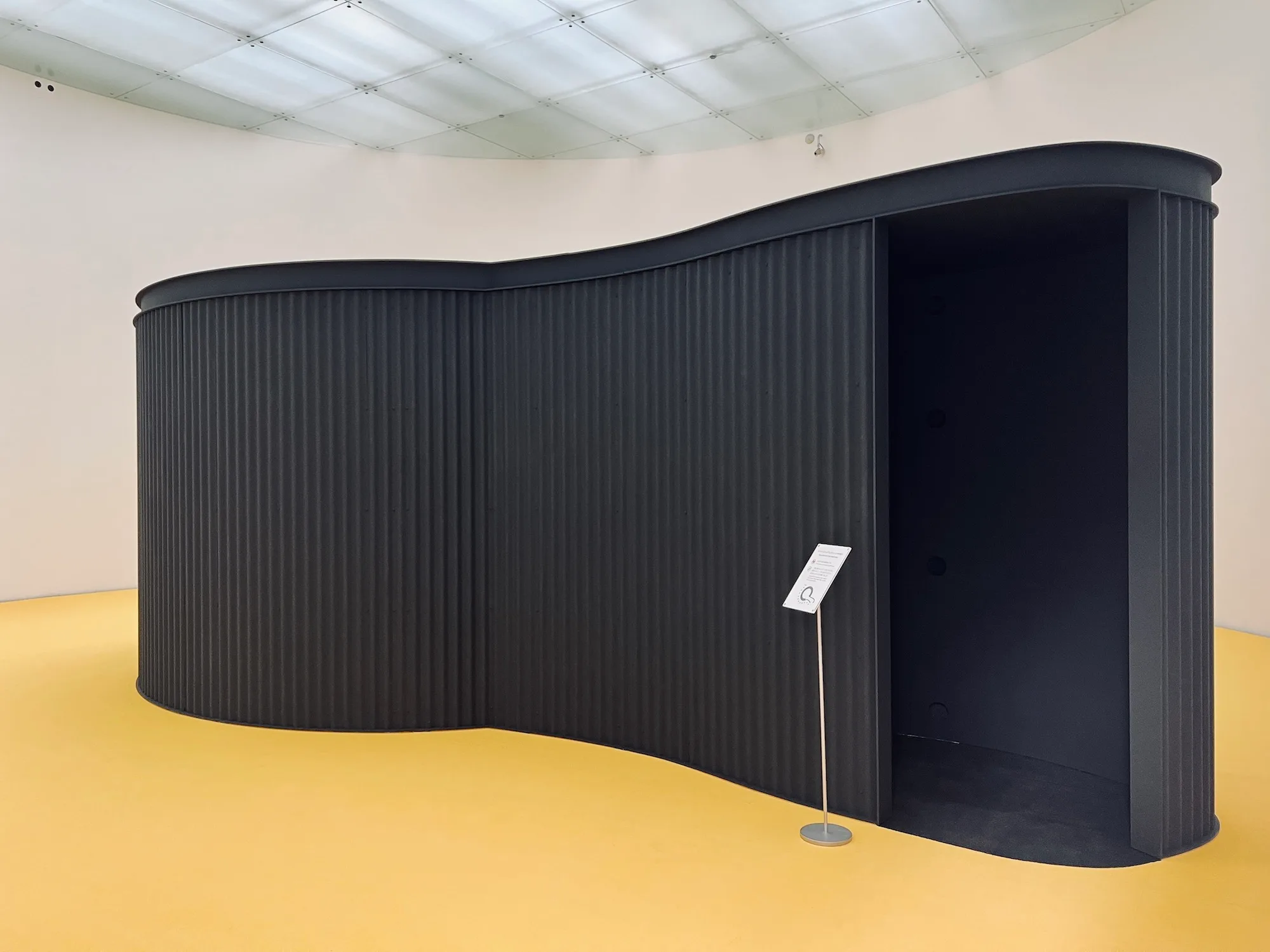 《マウス・ミュージアム(ヴァン・ゴッホの耳)》(2022)は、円形の展示室に設られた、もうひとつの美術館。本作はオルデンバーグが自身の芸術作品を陳列するために制作し、1972年のドクメンタ5で発表したマウス・ミュージアムが着想源だ。マウス・ミュージアムは名前の通りミッキーマウスをモチーフにしたかたちをしていたが、アレックス・ダ・コルテはそこにゴッホへのオマージュを加え、左耳を切り取ったかたちとして《マウス・ミュージアム(ヴァン・ゴッホの耳)》(2022)を制作した。
