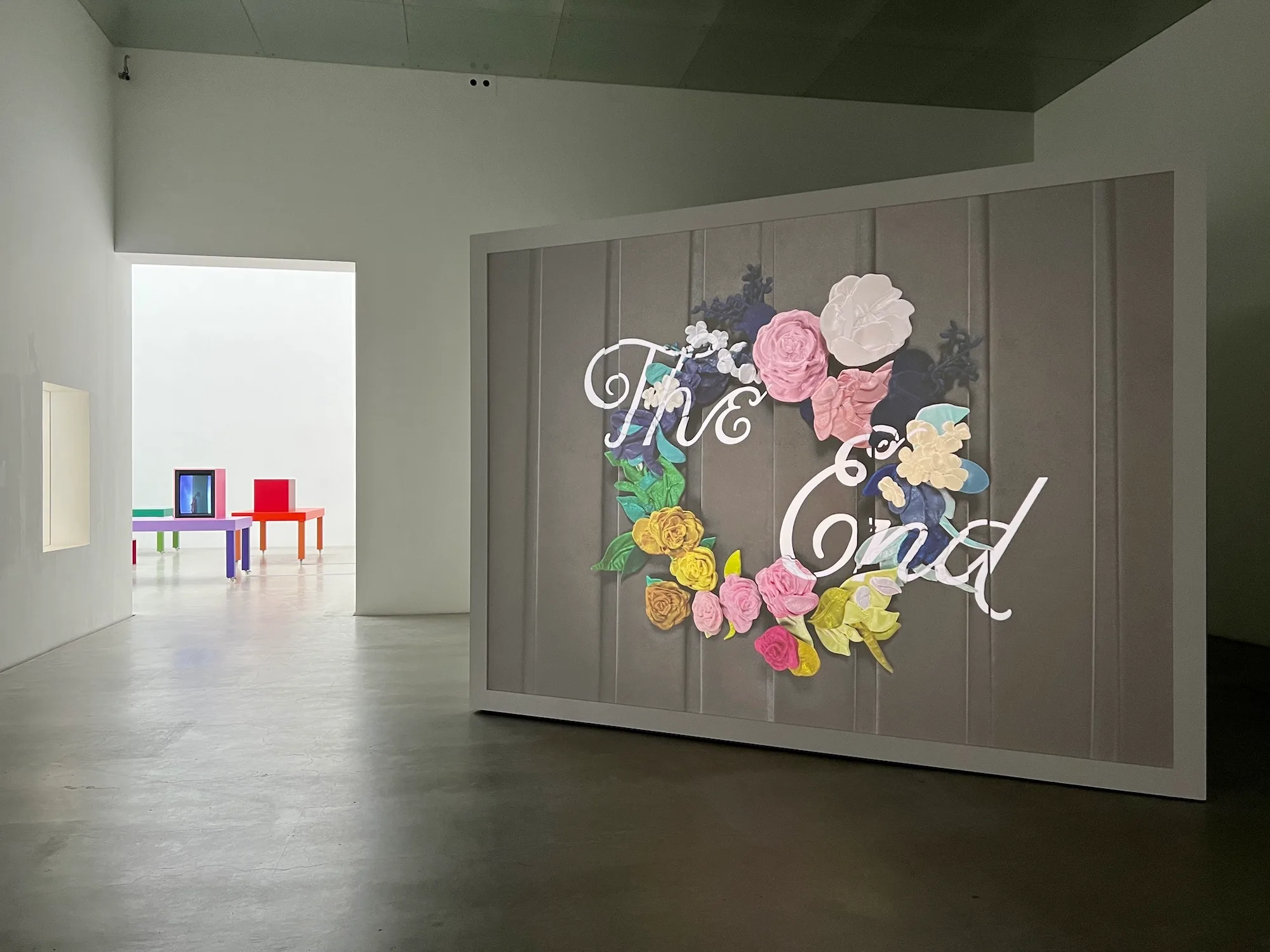つづく映像インスタレーション《ROY G BIV(ロイ・ジー・ビヴ)》(2022)も「The End」という言葉から始まる。展覧会の「始まり」に「終わり」があるという、なんとも不思議な螺旋の迷宮に誘われるようだ。