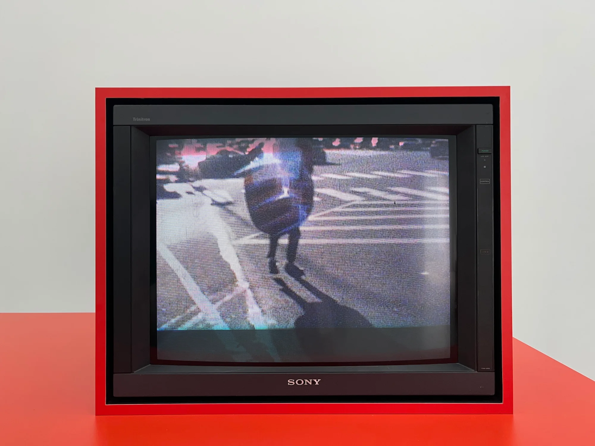 ダ・コルテがこうした世界を切り拓くきっかけとなったのは、22歳の頃に手がけた《その重さを運ぶ》(2003)だった。舞台セットや小道具、あるいは巨大なインスタレーションを作るには彫刻が不可欠な要素となる。テレビのブラウン管の中に映し出される本作は、行き詰まりを感じていた当時の彼が、縫製された巨大なケチャップのソフトボトルを抱えてフィラデルフィアの街を歩く自分の姿を記録した作品だ。アメリカの彫刻家クレス・オルデンバーグが、巨大な歯磨き粉のチューブを運ぶ自らの姿を収めた映像に着想を得た。加えて、彼はこのとき、祖母の裁縫に着想を得て、硬固で不動だと思われていたものを柔らかで変容可能なものとして自分のものにしていく術を発見したのだと言う。断片と断片を縫い合わせて世界をコラージュしていく縫製は、彼にとって、困難に思えたことを受け入れ、マチズモを緩和することであり、人間であることの意味をより柔軟に理解する営みでもあった。