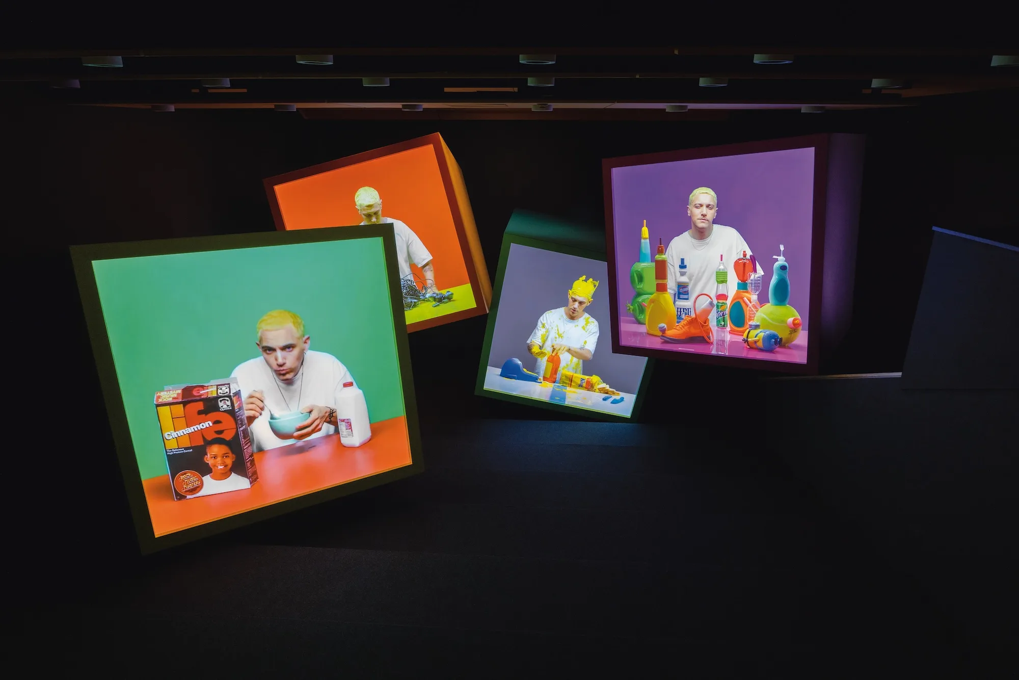 アレックス・ダ・コルテは、1980年にニュージャージー州カムデンに生まれた。幼い頃は、ディズニーのアニメーターになることを夢見ていたという。現在、金沢21世紀美術館で開催されているアジア初の個展「Alex Da Corte Fresh Hell アレックス・ダ・コルテ 新鮮な地獄」は、ダ・コルテ自身が独自のひねりを加えながら20世紀の資本主義社会を象徴する「アメリカ」の大衆文化のイメージを再構築し、加速する情報社会に暮らす私たちに自身の身体感覚や認識のありようをユニークに問い直す展示である。