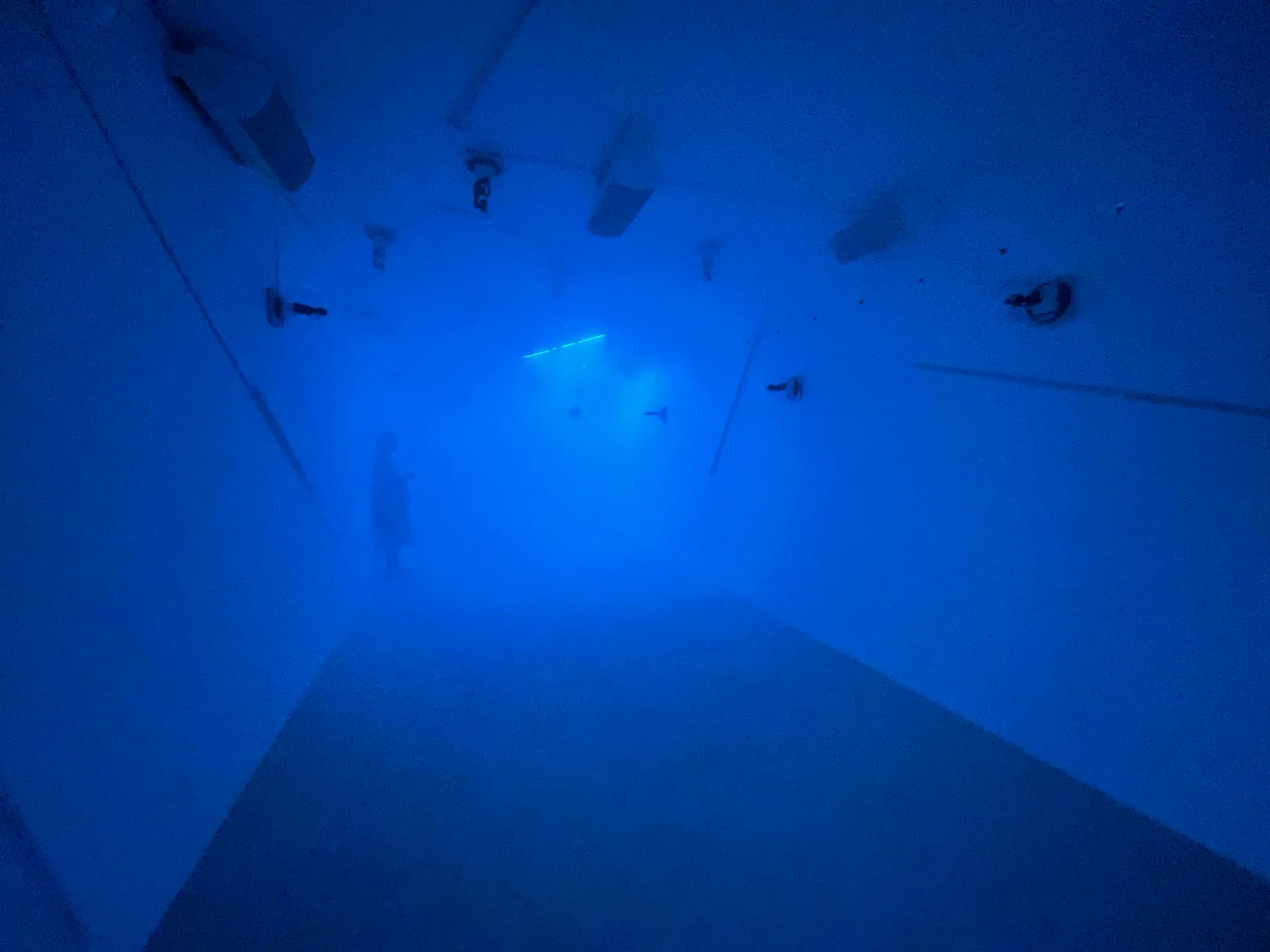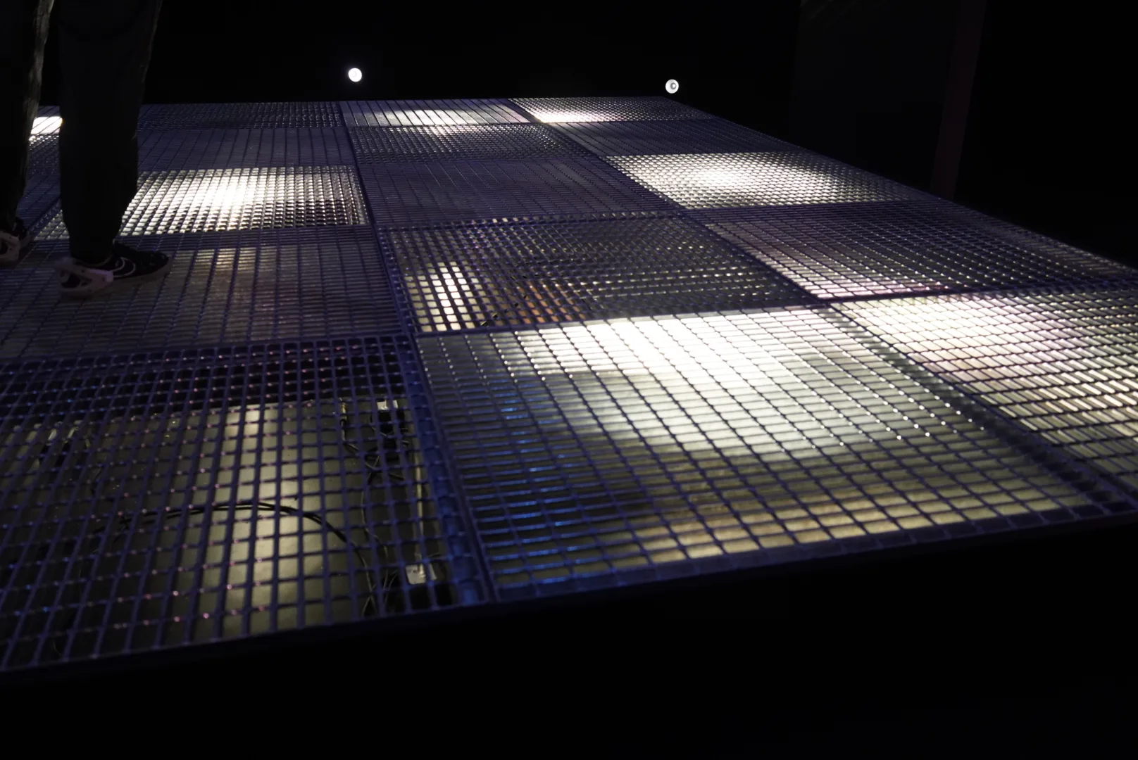 最も大きな展示室で行われている、コーネリアスによる『QUANTUM GHOSTS』が迎えてくれた。用意されたステージに上がると、360度に配置された20台のスピーカーによって四方から聴こえる音に包まれる。