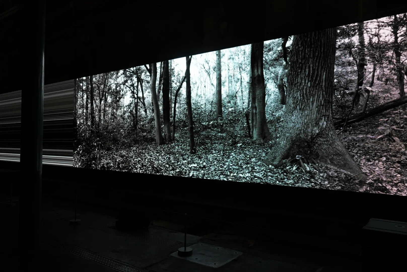 弦を弾く音、ピアノの低音階の単音、そして雨の音......坂本龍一によってセレクトされた音たちが空間を支配している。メロディのあるもの、不穏さを感じさせるもの、人の声や物音が重なり合ったものなど、様々な音色が耳に届く。