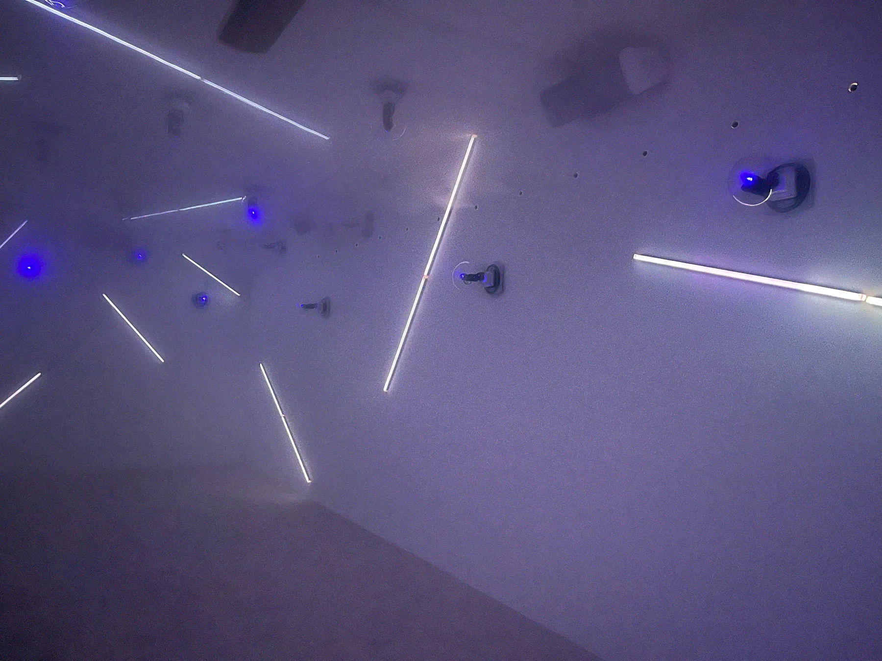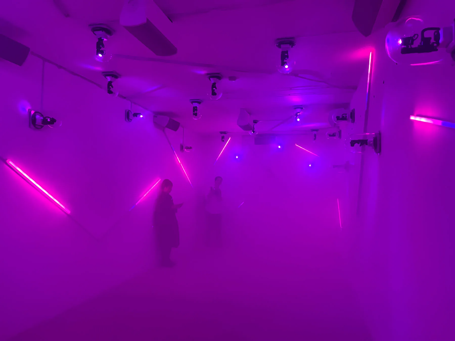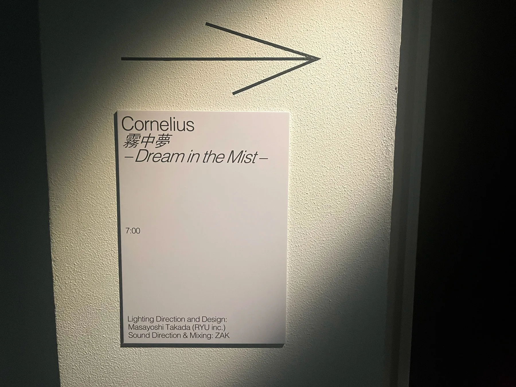 3階フロアでまず見られるのが、小山田圭吾のソロユニットであるコーネリアスによる『霧中夢 ーDream in the Mistー』。部屋に入ると立ち込めている霧、その向こうに見えるのは壁に貼られたカラフルなネオンの光。流れているのは、2023年6月に発表された新作アルバム『夢中夢 -Dream In Dream-』に収録されている曲だ。立体音響は音響ディレクター・ZAKが担当している。音が先行したり、光が先行したり......自分の感覚をすべて使いながら、弾ける音と動き回る光を追って、まるで霧の中で夢を見ているようだった。