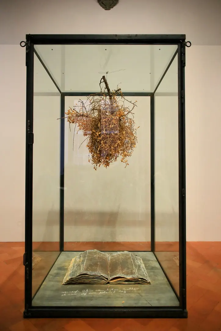 簡単にキーファーの経歴を振り返っておこう。1945年、ドイツ・ドナウエッシンゲン生まれ。大学で法律とロマンス語を学ぶものの、途中で美術へ転向。大学卒業後にはヨーゼフ・ボイスらに師事した時期もある。69年、ナチス式の敬礼を作家自身が行ったパロディ作品が物議をかもす。以降もナチスをはじめとするドイツが抱える歴史の暗い面や、古代の神話、リヒャルト・ワーグナーなど歴史や文学、哲学をモチーフとした作品を制作し続けている。国際的な注目を集めたのは、ゲオルク・バゼリッツとともに西ドイツ代表として参加した80年のヴェネチア・ビエンナーレ。90年代にはインドやアジア、アメリカ、北アフリカなどを精力的に旅行。92年からは南仏バルジャックを拠点に活動してきた。
