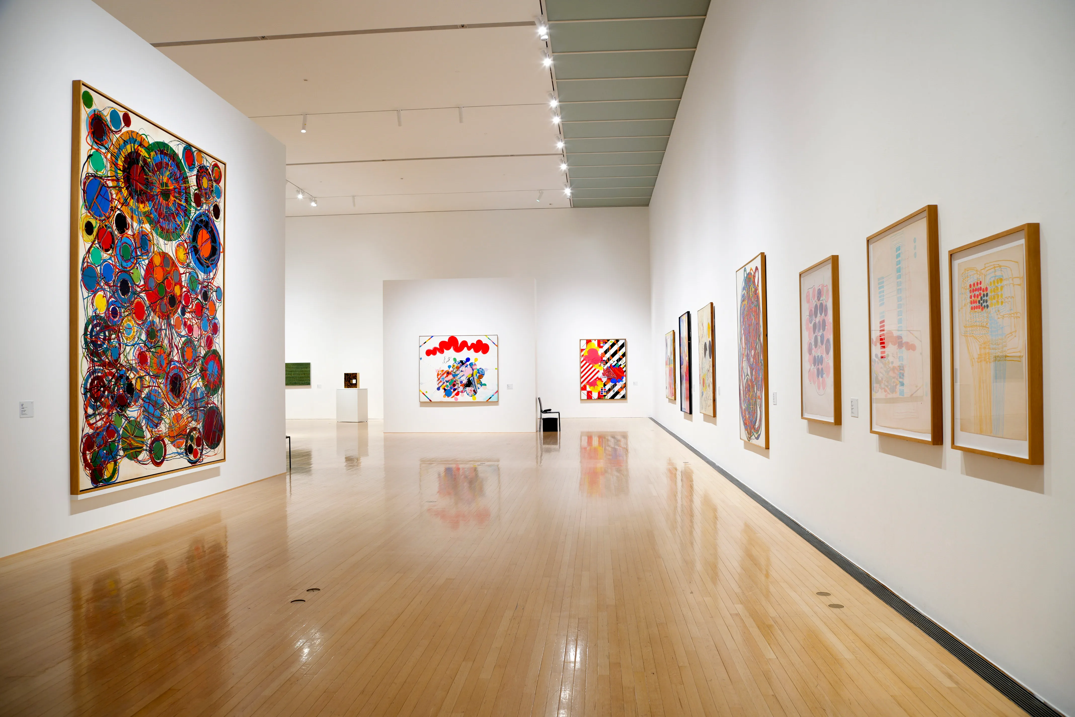 成相 歴史の語りへの反省と同時に、本展には美術館自身の反省も含まれています。というのも、批評と現実は完全には一致せず、「アクション」の後も女性の活躍はしばらく続くんですね。けれど、本展で取り上げる14人の作家のうち、美術館で個展が開かれたのは草間彌生(1929〜)や田中敦子をはじめとする限られた作家のみで、半数近くの作家は作家研究も画集もほぼない(赤穴桂子[1924〜1998]、榎本和子[1930〜]、白髪富士子[1928〜2015]、田中田鶴子[1913〜2015]、福島秀子、毛利眞美[1926〜2022]は美術館個展なし)。そして徐々に、その姿が歴史から消えていった過程があります。