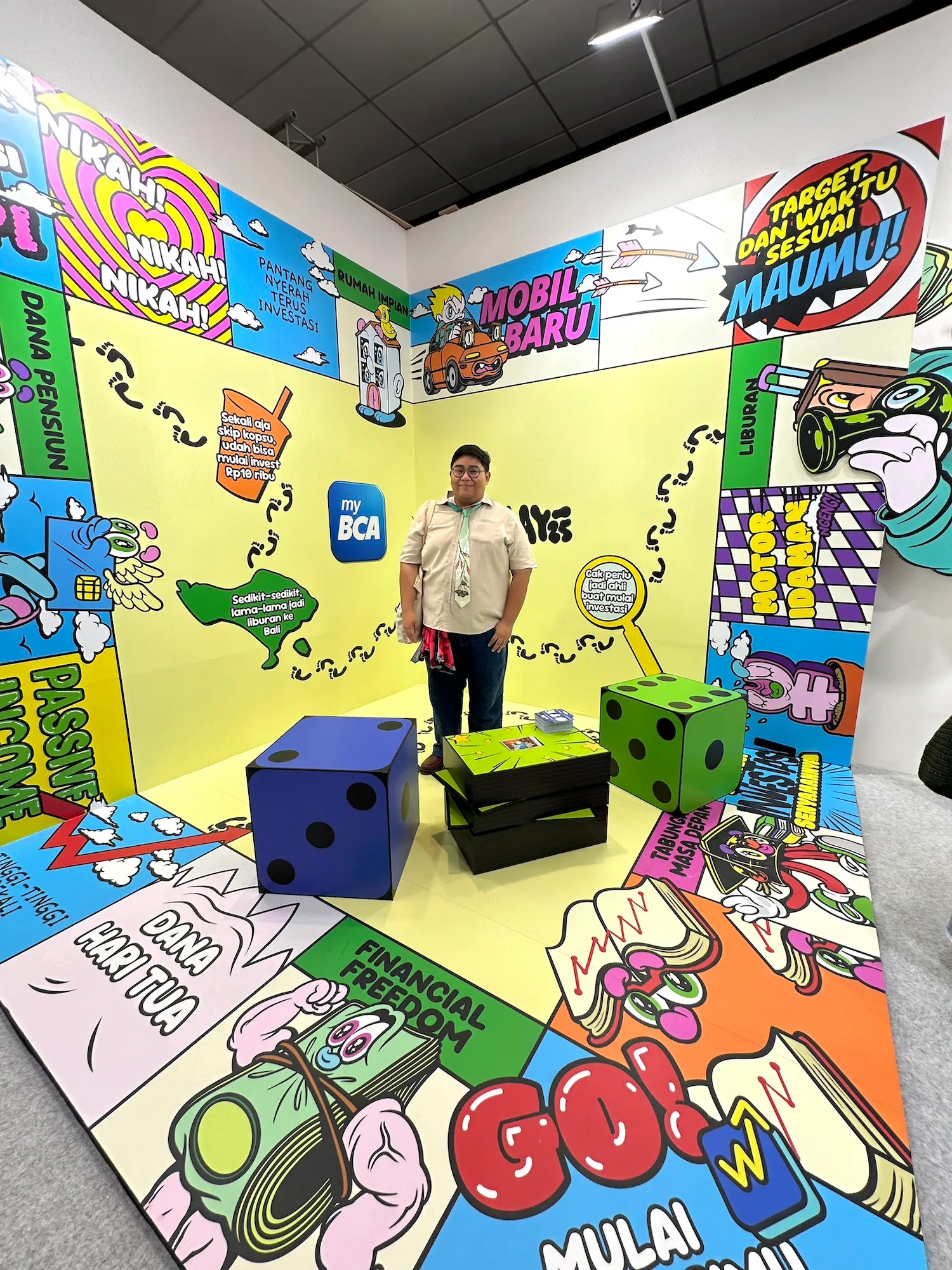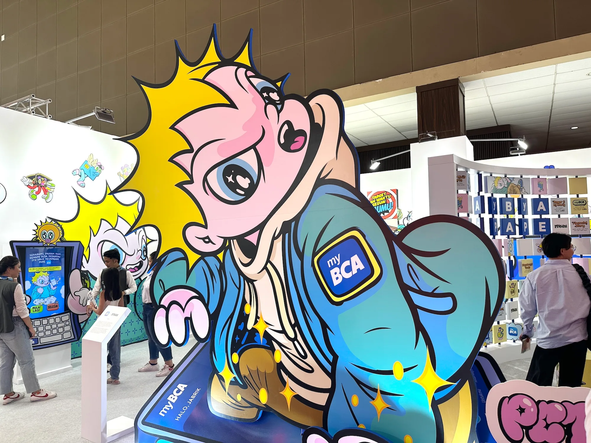 例えばBCAの公式オンライン・モバイルバンキング「myBCA」 は、1993年生まれのアーティスト、マックレイ(Muklay)のアイコニックなキャラクターとコラボレーションしている。マックレイが描くキャラクター、シ・ジャブリック(Si Jabrik)が「myBCA」を使って、人生の節目や世界各地を旅する体験ができるインタラクティブスペース 「Petualangan Si Jabrik di Dunia myBCA」 が登場した。