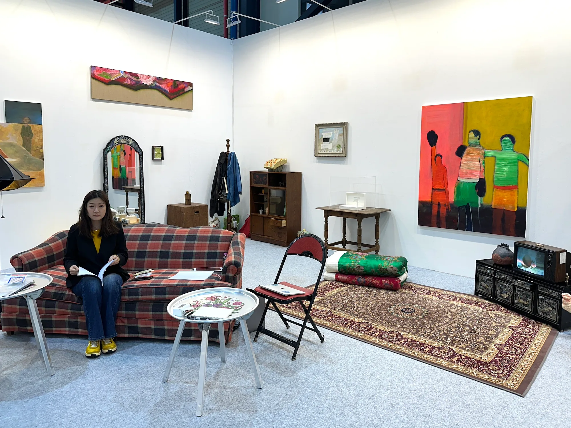 小山登美夫ギャラリーディレクターの長瀬夕子によると、ギャラリーの韓国人スタッフと協働してブースを作り上げたそうだ。フェアの来場者(年齢層は20〜30代)が、「この家具おばあちゃん家にあった!」とどこかなつかしく思う雰囲気を作りたかったとのことだった。作品の価格帯は「アートフェア東京」を参考にしており、比較的購入を検討しやすい価格に設定した。