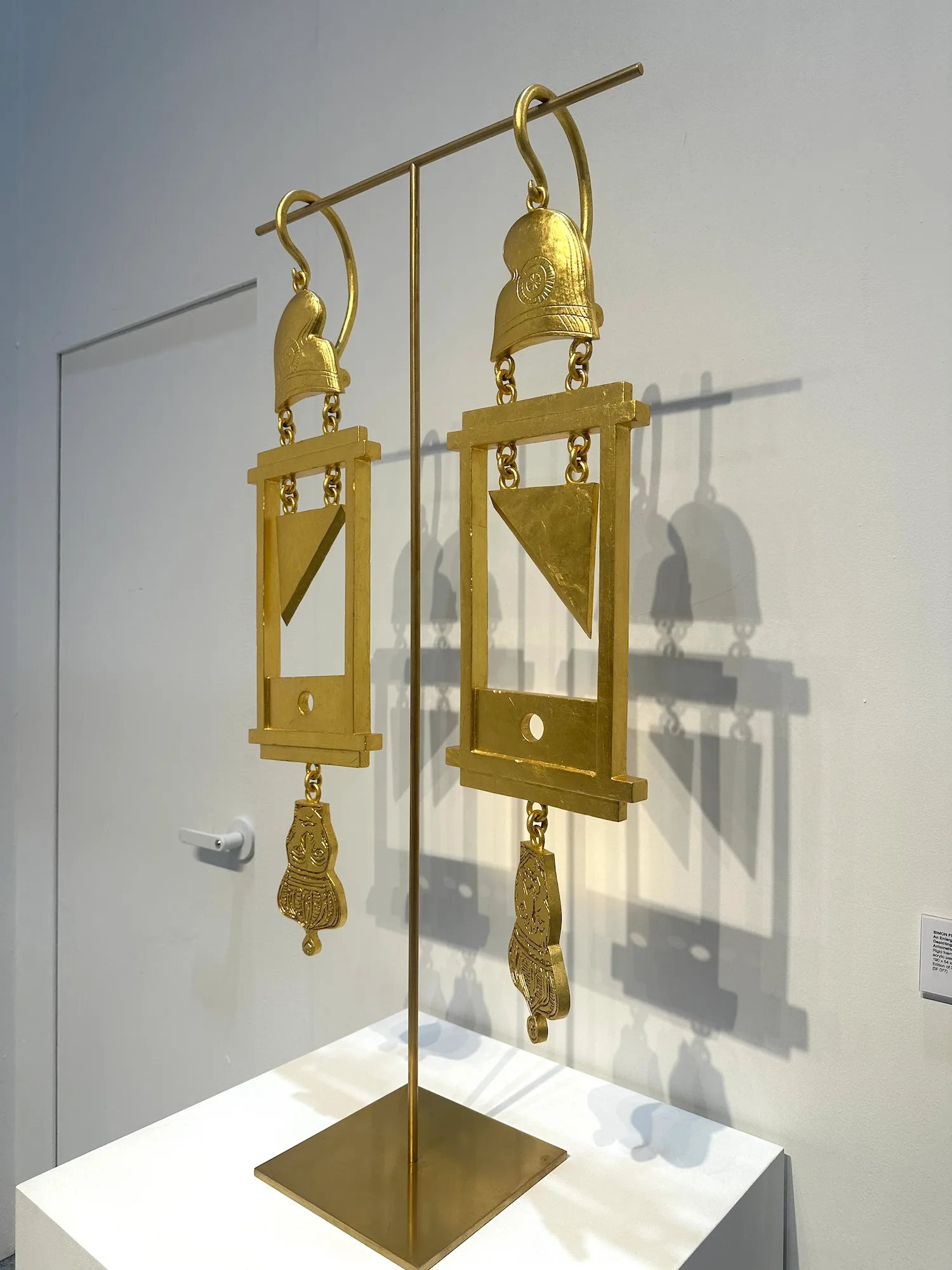 ソウルにもブランチを持つエスター・シッパー(Esther Schipper)では、サイモン・フジワラの巨大な絵画がブース中央に据えられ、イヤリングを模した立体作品もあった。