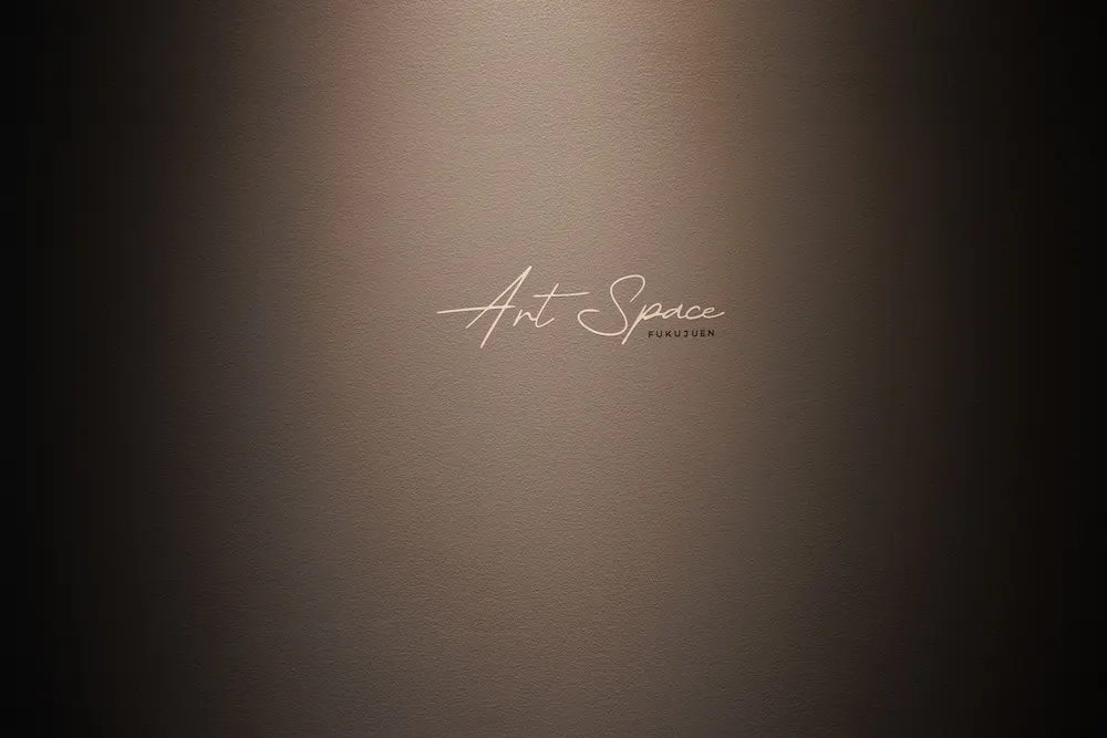 エレベーターを降りると、シックな淡いグレー基調とした、落ち着いた空間へと誘われる。設計を担当したのは、数々の受賞歴がある建築家・陶器二三雄(とうき・ふみお)。国立国会図書館関西館(2002)で国際建築設計競技最優秀賞を受賞、森鴎外記念館(2012)では建築家第55回BCS賞、日本芸術院賞、日本建築学会作品選奨を受賞している。そんな建築史上の名作と共通する陶器氏の作風が、この「アートスペース福寿園」のデザインに、さりげなく表現されている。足元の上質で暖かみを感じさせるウッドフロア、かすかな青みを帯びた壁の色目。マットなスウェード調の椅子や、透明なパーテーションなど、このスペースのために特別にデザインされたオリジナルのインテリア什器も、空間に溶け込み調和している。こうしたディテールには、陶器氏が国立国会図書館関西館で表現した静けさとシンプルさ、森鴎外記念館に用いた、素材感とテクスチャーへのこだわりを思いおこさせる。