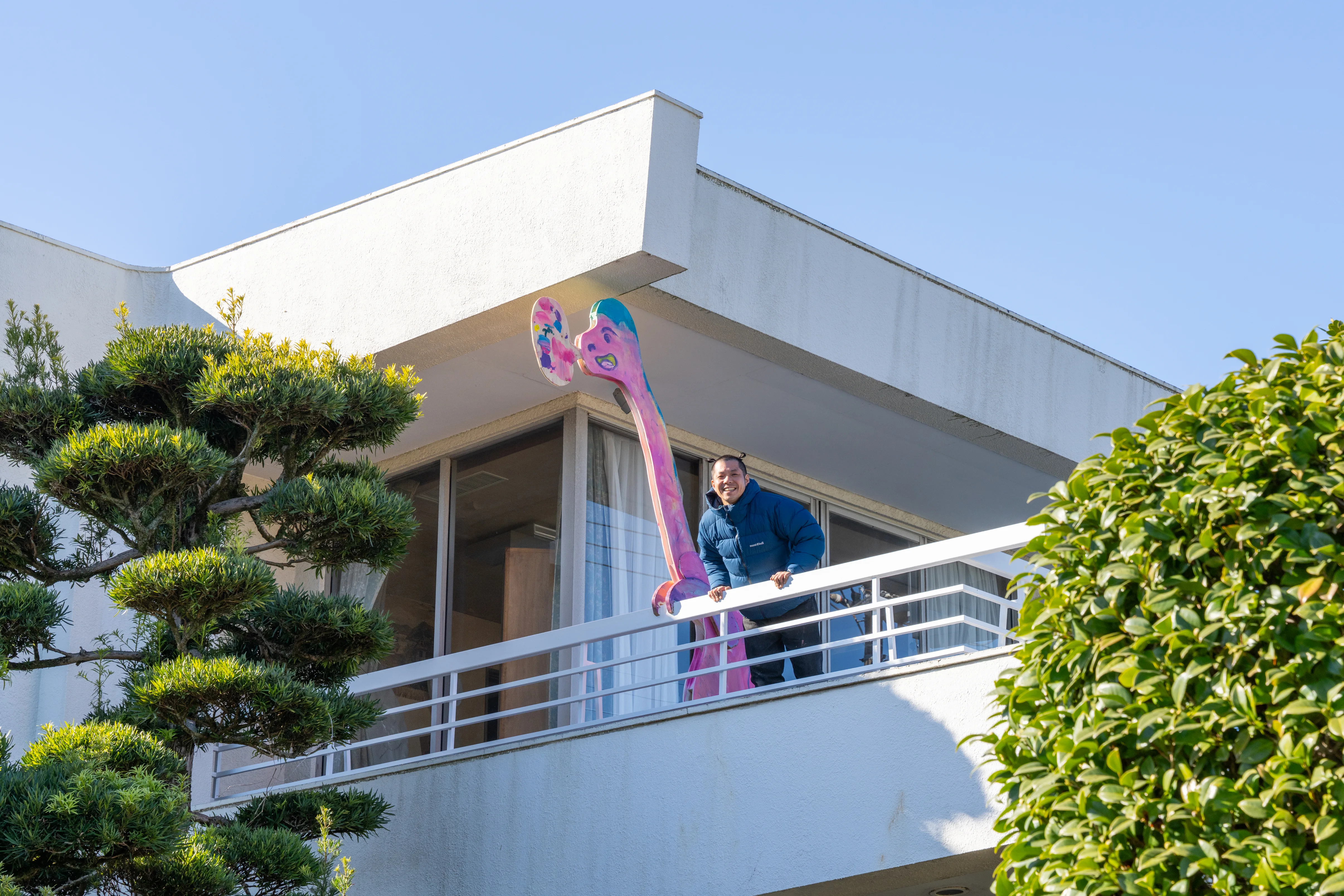 そして最後は、青梅線の羽村駅から25分テクテク歩き、田んぼを超えて、突如現れる昭和モダンの邸宅と庭を舞台とした「時間を過ごす家」。半世紀以上前に建てられ、今は家主のいなくなった豪邸にて、現代アートという異物が点在していました。展示作品はどれも素晴らしかったけど、その舞台に残り続けている「いつかの誰かの時間」を同時に味わう。展示会場の一部にもなっていた広い庭で、子供たちがキャッキャッと遊んで笑う楽しそうな声が窓越しに聞こえてきて、こういうアート体験もあって全然いいよなと心が動かされました。