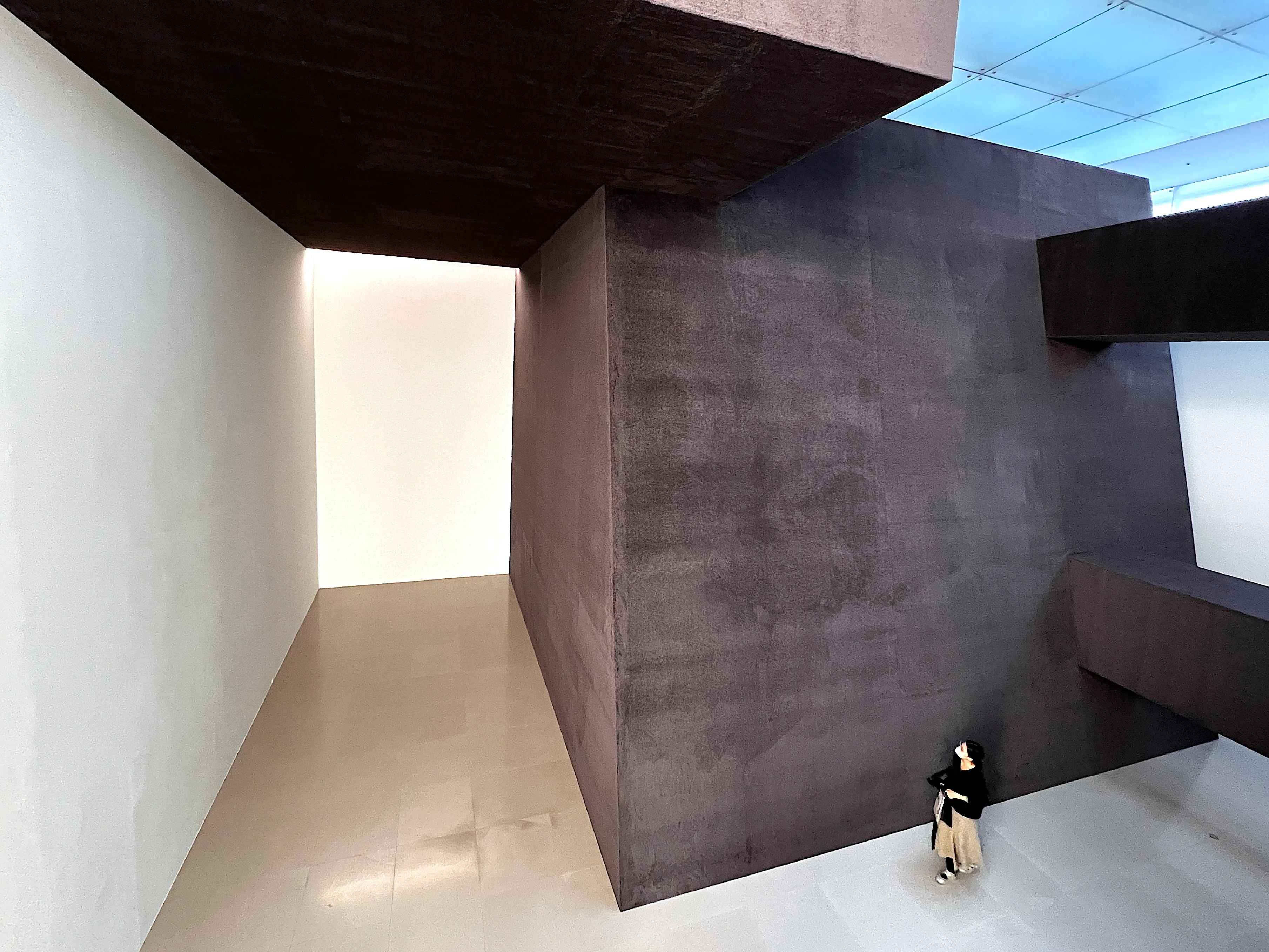 個人的にアート作品による美術館への建築的な介入に関心をもっているが、玉山拓郎の展示は、ど肝を抜かれた。2、3階の5つの展示室を使いながら、これらを横断するたったひとつの黒い連続体しか存在しない。やがて図と地が反転することで、改めて谷口吉生の空間も強く意識することになった。