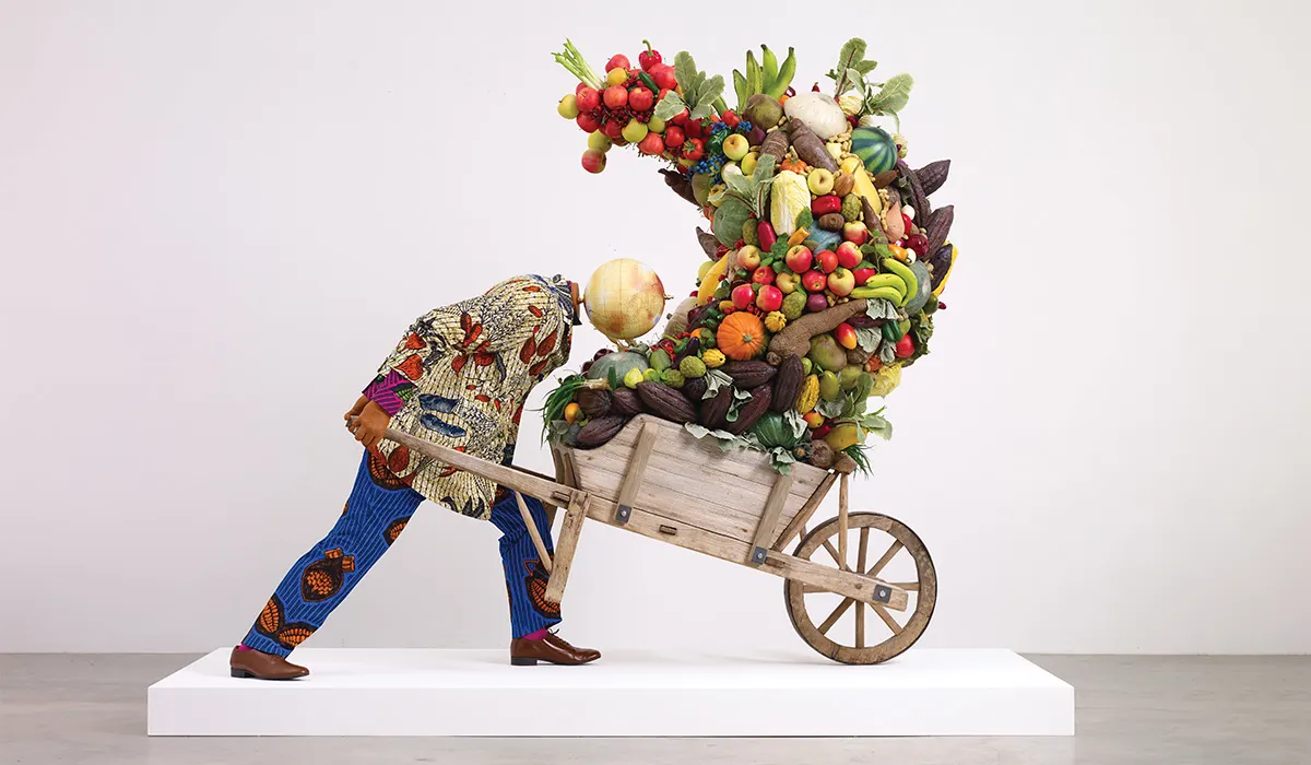 InIVAとは、スチュアート・ホールの指導下で1994年に東ロンドンのリヴィングストン・プレイスに、オートグラフ(Autograph ABP、ブラック写真家協会[The Association of Black Photographers]として知られる)と共同設立された機関である(*6)。アラブ系英国人の女性ジレイン・タワドロス(Gilane Tawadros)が初代の所長になり、アフリカ系―アジア系英国作家の調査研究、アーカイヴ、図書館、展覧会、作品委嘱を組織的に行ってきた。InIVAの精力的な活動により世に認知されるようになった作家は数えきれず、たとえば、インカ・ショニバレCBE(Yinka Shonibare CBE、挿図13)、ザリーナ・ビムジ(Zarina Bhimji)、シュタパ・ビスワス(Sutapa Biswas)、ヒュー・ロック、ソニア・ボイスなどのキャリアが国内外に広がったのも、タワルドスの率いたこのInIVAの活動によるところが大きい。