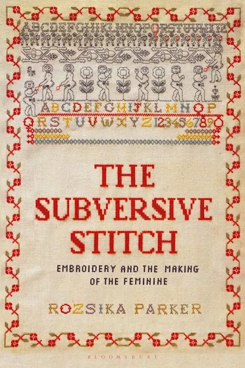 とくにパーカーの『破壊力を秘める一針』(Subversive Stitch, 1984、挿図2)では、美術と非美術(工芸や手芸)のヒエラルキーに内包される性差別を指摘し、その装飾性は「女性性」の自然な発露であり美術ではないとされてきた問題を議論した。そしてパーカーは、中世ヨーロッパ以来伝わる刺繍のステッチや模様パターンのサンプルを記録しておく技術見本(sampler)の中に「女性性」の神話を破壊するような文章が刺繍されたものを見つける。それがこの本の破壊力を秘める(subversive)という題になり、装飾的な非美術の手芸的な手法を逆手にとり、ソフトにしかしチクリと刺す戦略へのアイデアを提供した。