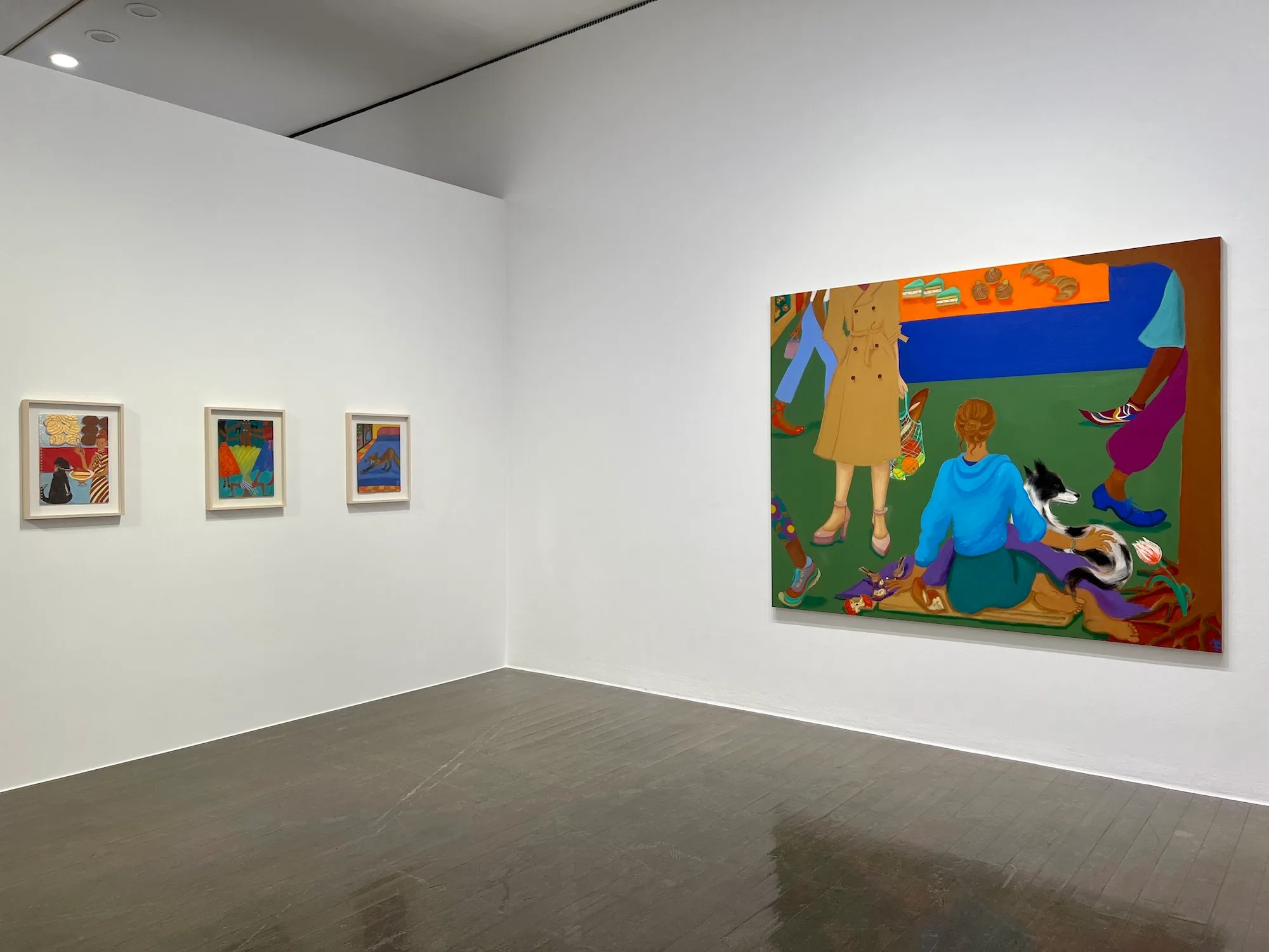マリア・ファーラ(1988年フィリピン生まれ)は、日本で育ちのちにロンドンへと渡った経歴を持ち、移民の経験や女性たちに向けられるまなざしをテーマに、彩り豊かな絵画を制作する。家政婦やベビーシッターといったケアワークは、特に欧米ではアジアや南米などにルーツを持つ移民の人々によって担われてきた。社会的に弱い立場に置かれ、まるで見えないかのように扱われてきた人々が、日常に必要な労働を支えてきたのだ。