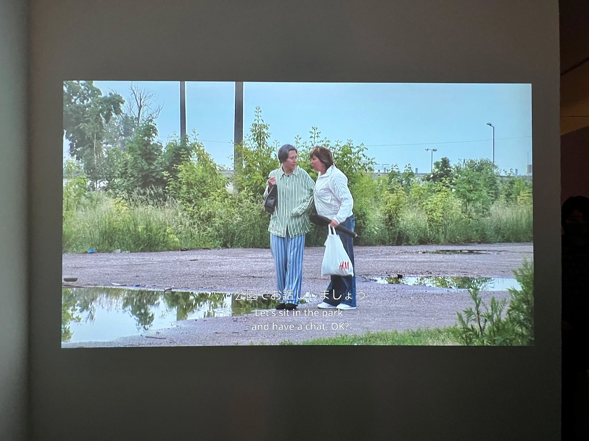 ヨアンナ・ライコフスカ(1968年ポーランド生まれ)は、認知症を患った自身の母親の姿になって、街を徘徊するパフォーマンスを記録した映像作品。介護施設や街にいる人々が、徘徊老人に向ける視線や善意が映しとられている。