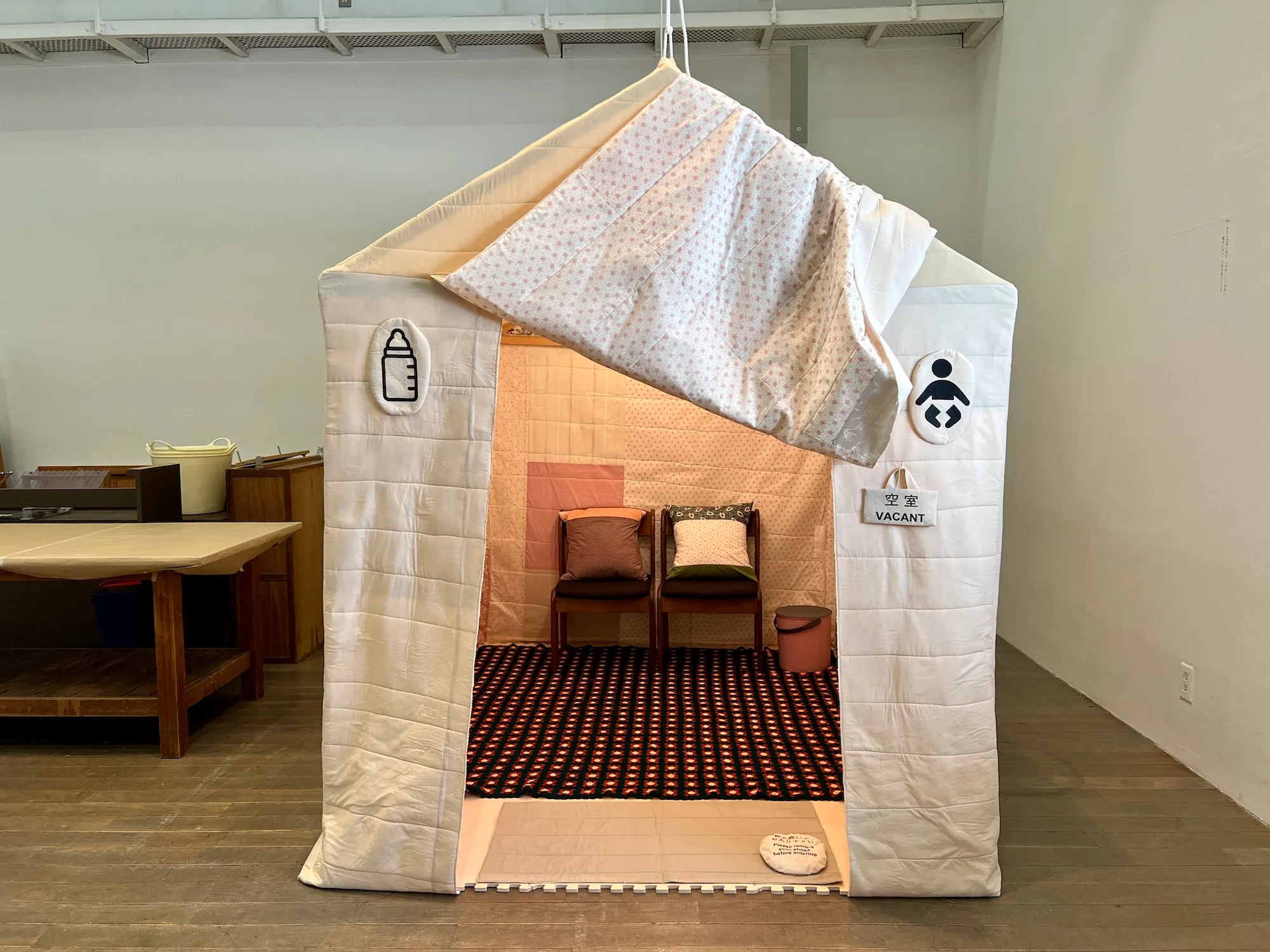 また、本展には作品ではなくインフラとして、碓井が制作した「授乳室」も2つ設置されている。なんと同館には常設の授乳室がないという問題があり、それにアーティストが応答したもの。水戸芸術館が開館したのは1990年だが、当時でさえ美術館という公共施設に「授乳室」がなかった、つまり乳幼児とその保護者の来館は重要視されていなかったということだ。Tokyo Art Beatのスタッフにも、過去にトイレで授乳した経験がある者もいる。