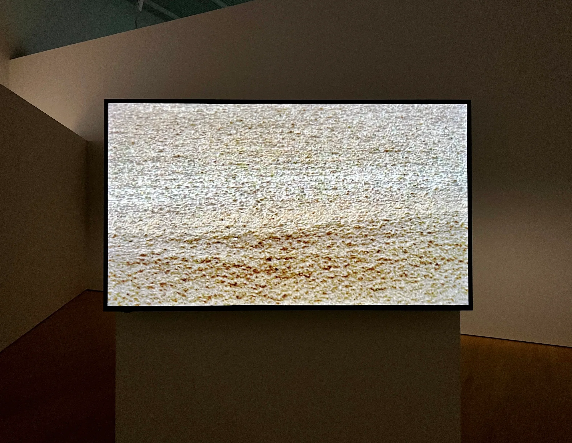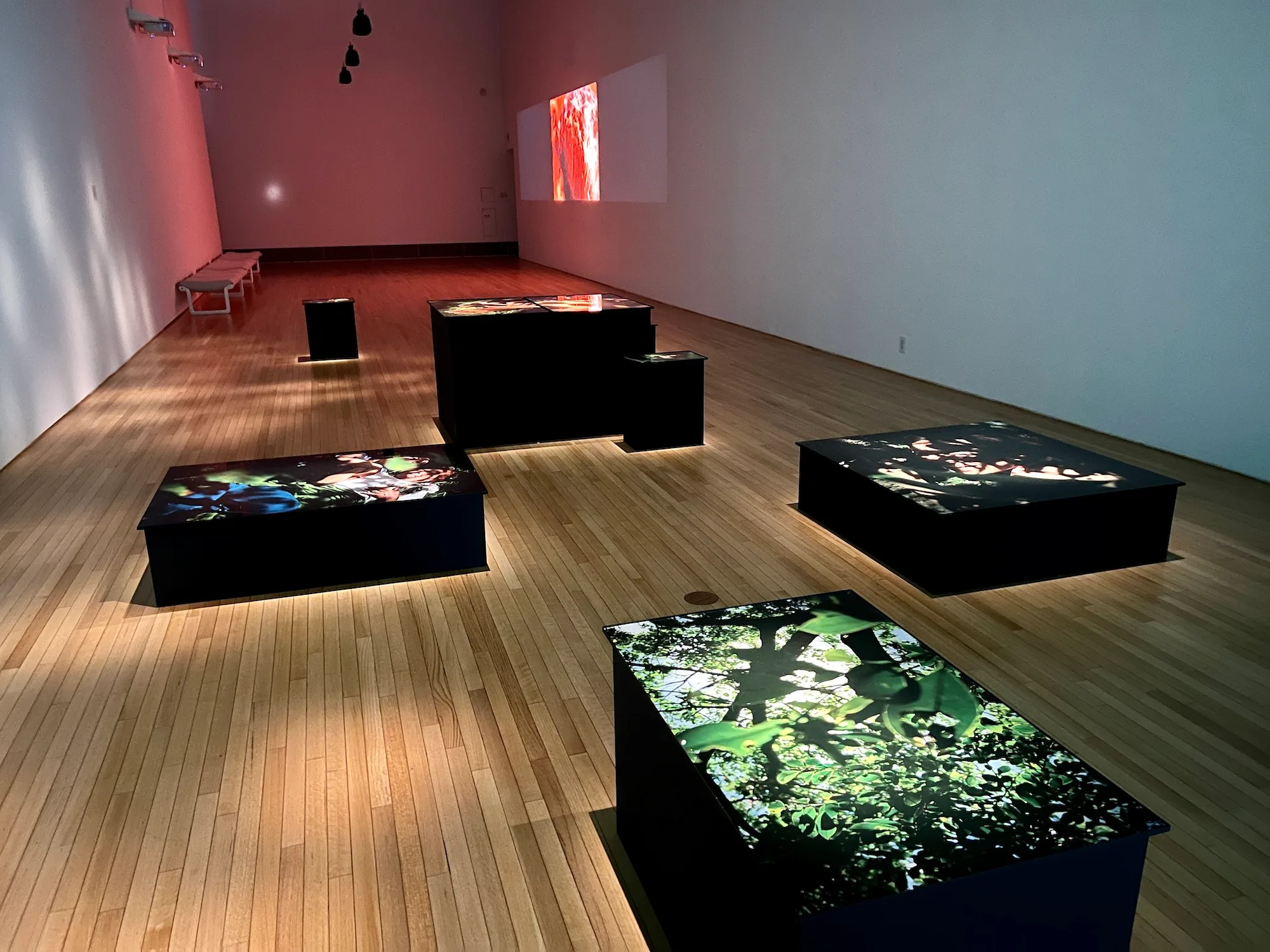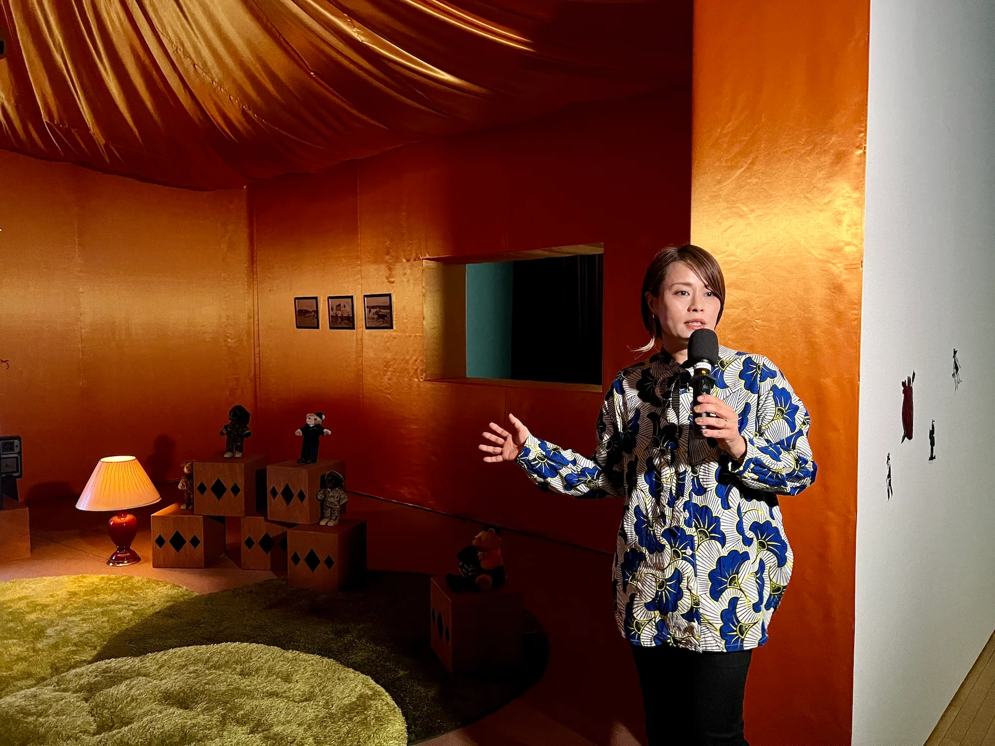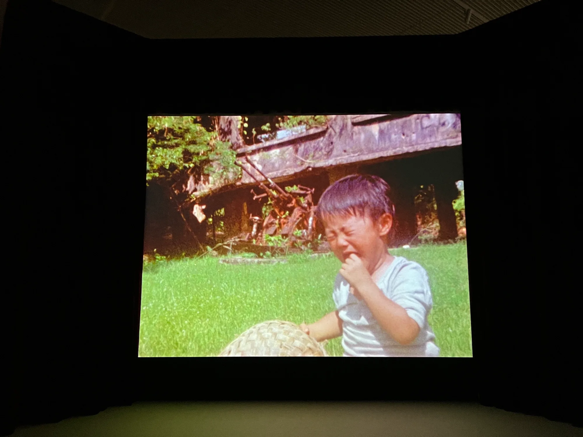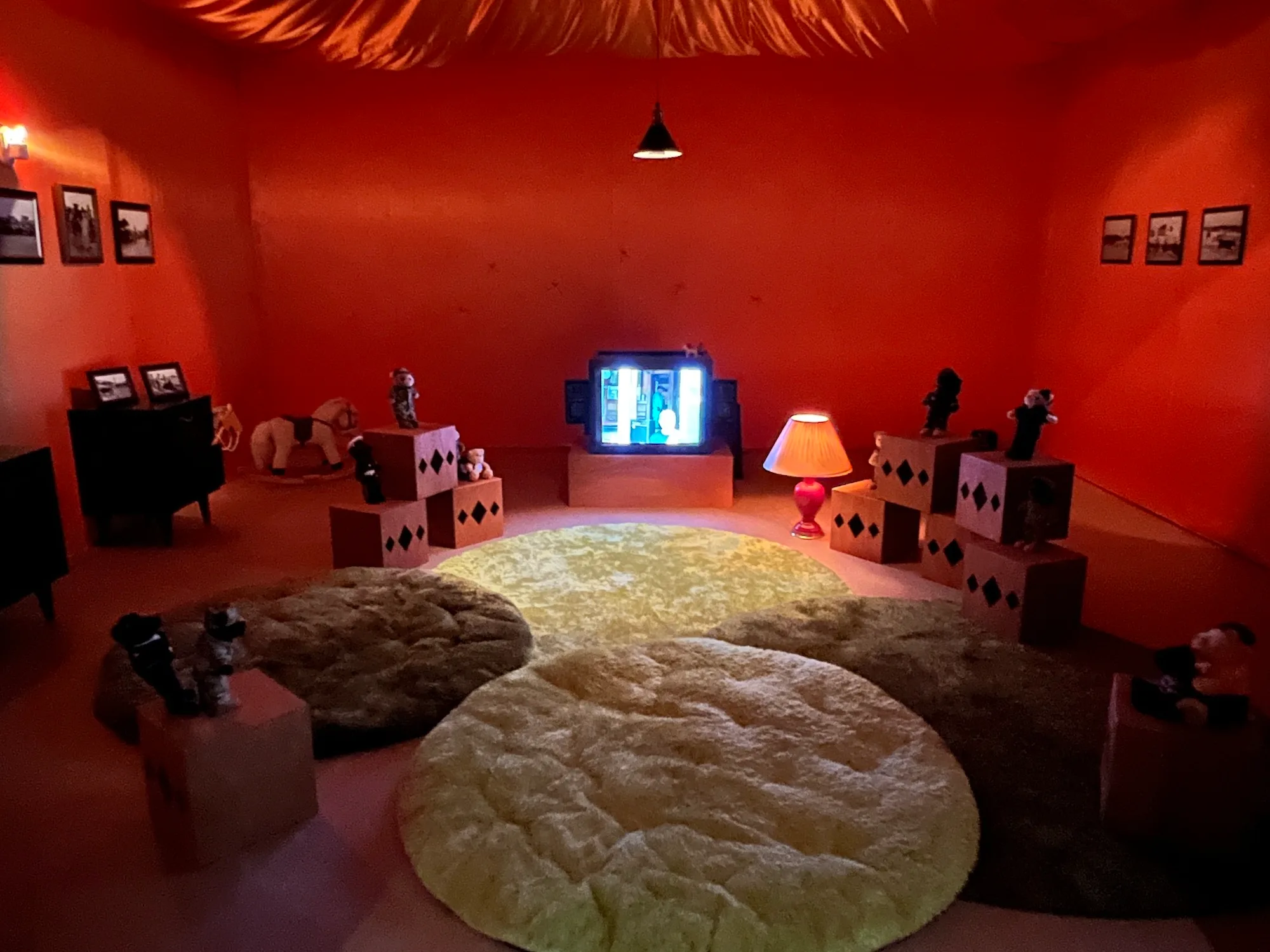 これまで東京で2度見た際には大きな1面スクリーンに映像が流れていたが、今回はかわいらしいベビールームが設えられ、その中の小さなテレビモニターに映像が映し出されている。(内覧会に同行した幼児もこのスペースを気に入り、くつろぎながら映像を見ていたのも予想外の驚きだった)。