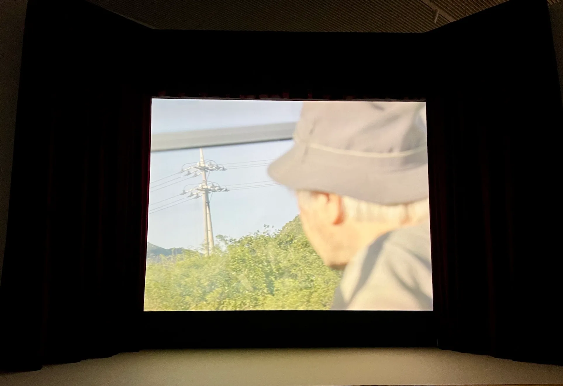 シングル・チャンネルのループ再生による本作は、ひとりの高齢男性(じつは父の山城達雄)がバスに乗り移動する沖縄の風景と、8ミリフィルムで撮影されたパラオの風景が組み合わされた映像作品だ。