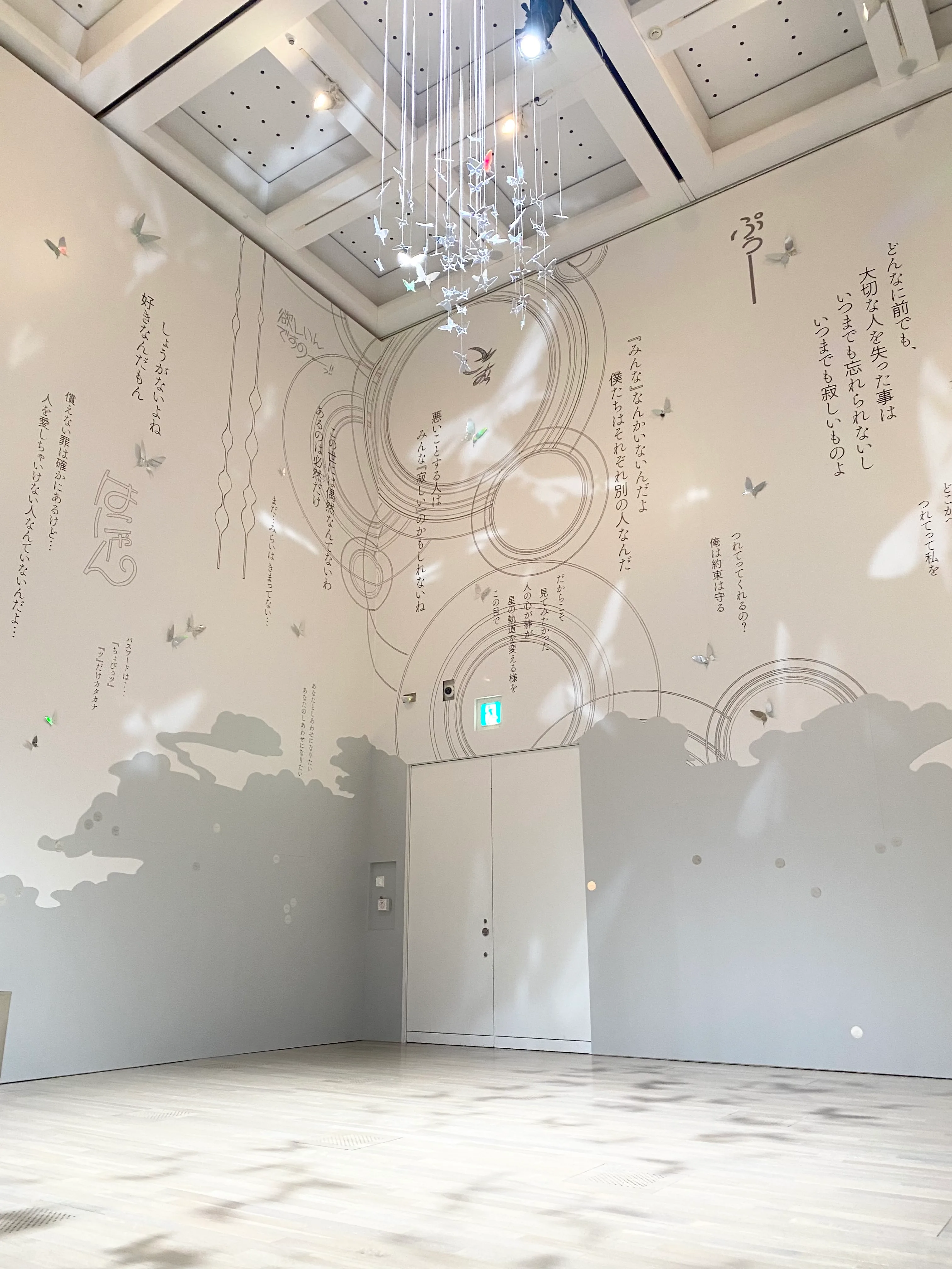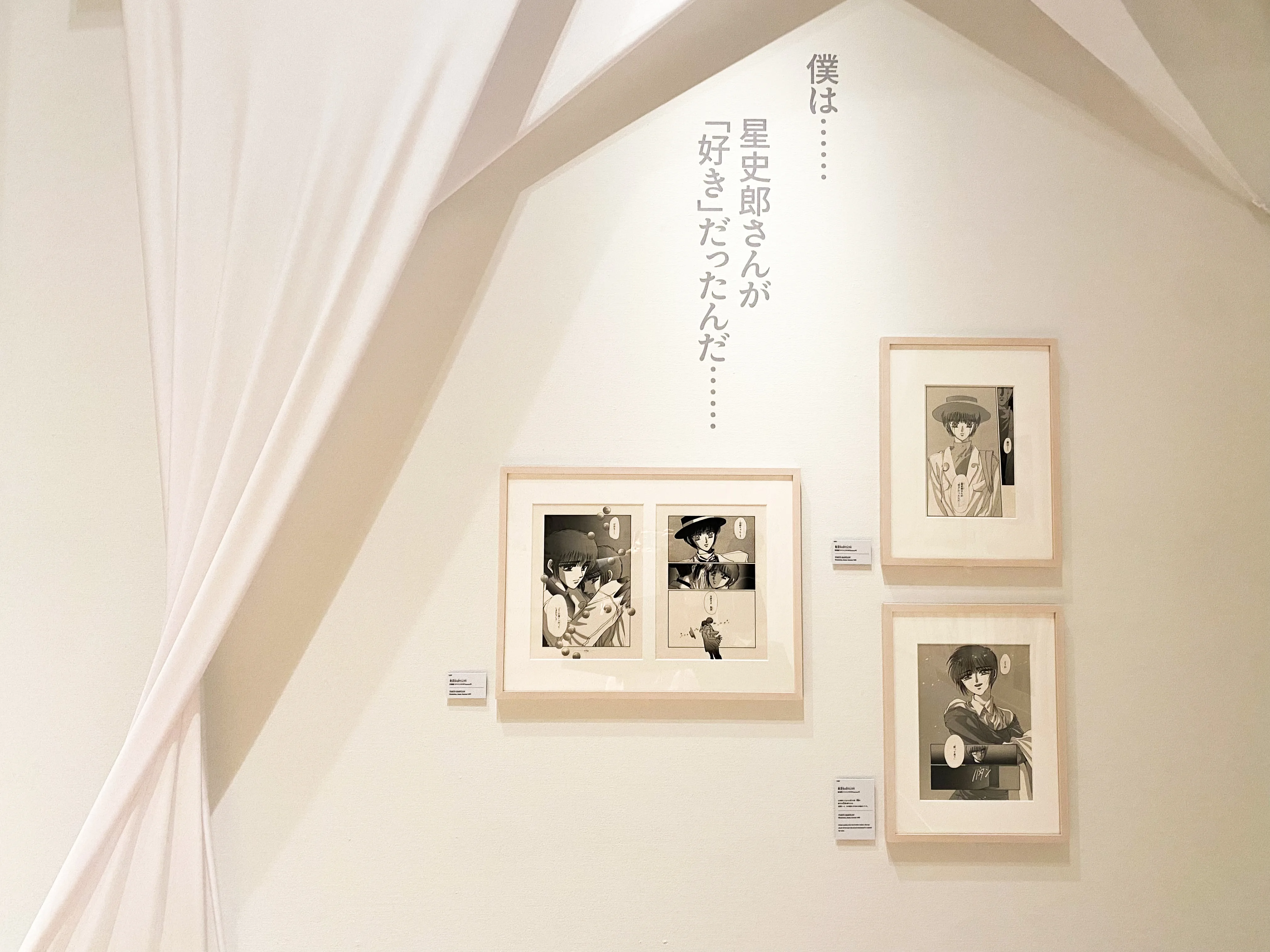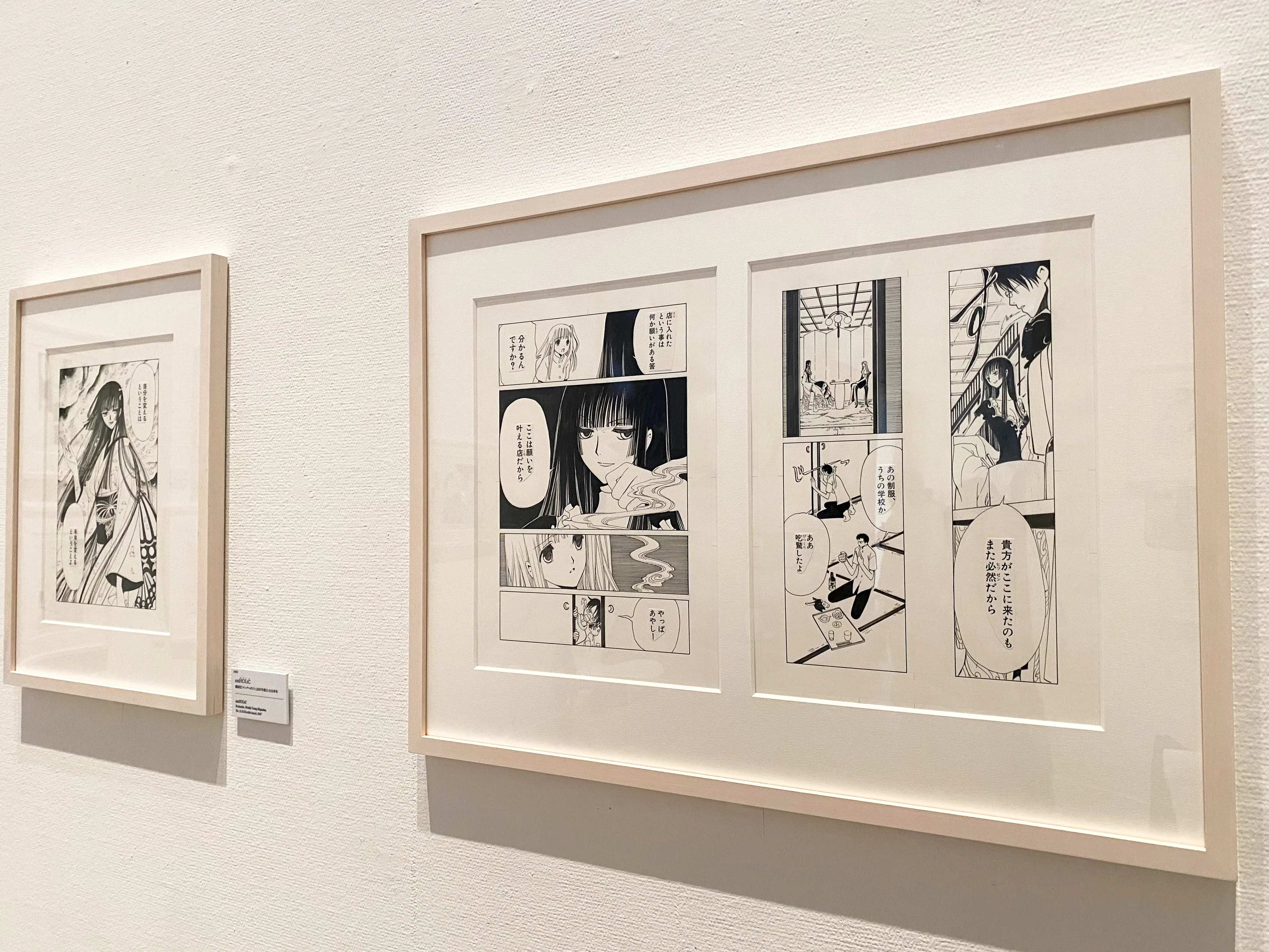 CLAMPの紡ぐ「言葉の力」に注目する「PHRASE」のエリアは二つの展示室で構成。一つ目の部屋では、『xxxHOLiC』を取り上げ、印象的なシーンを描いた本編のマンガ原稿約40点が展示される。二つ目の部屋には、壁一面にCLAMP作品のフレーズが散りばめられた空間が登場。