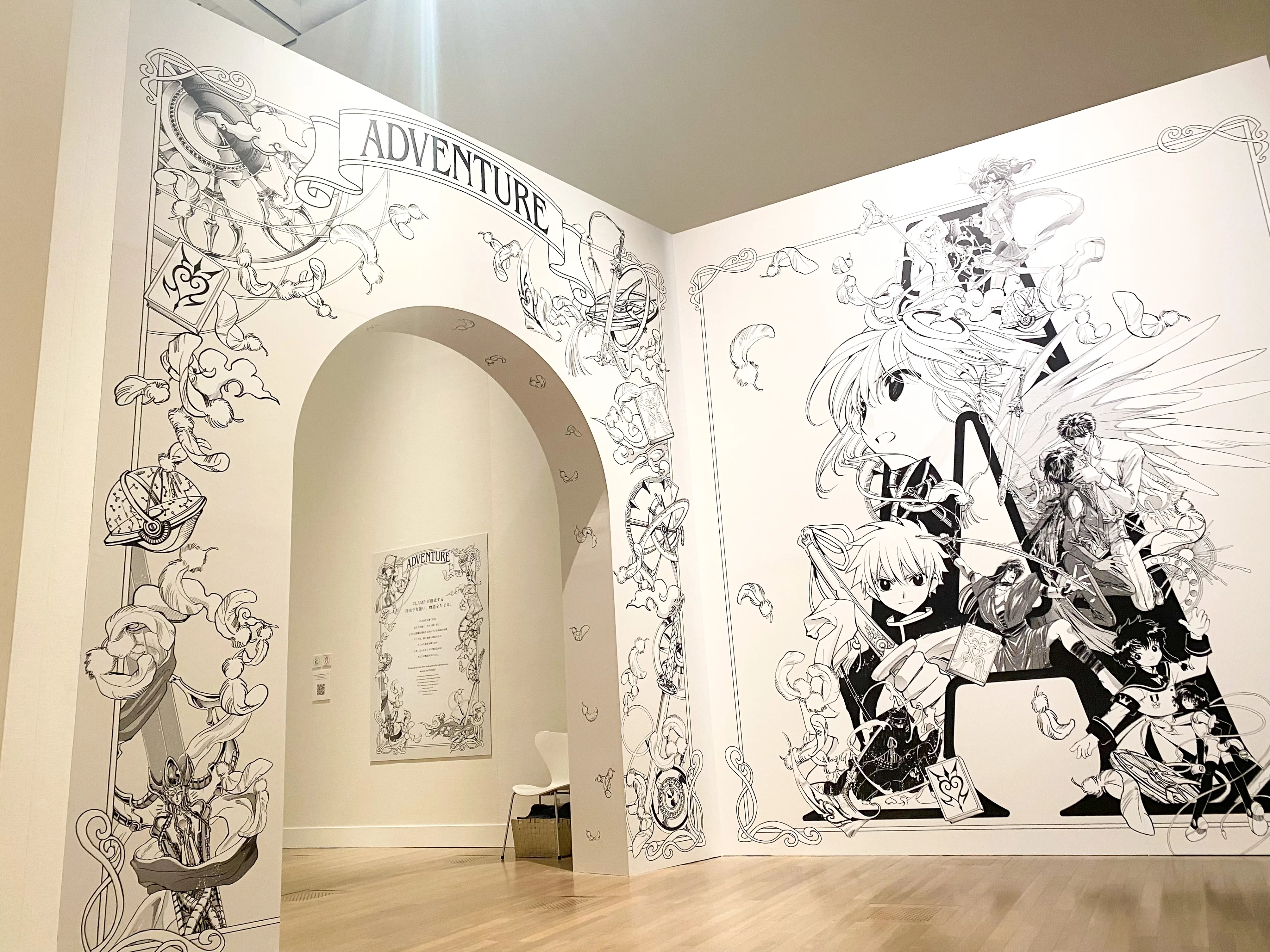 読者の心を掴むCLAMPのストーリーテリングの力を伝えるのが「ADVENTURE」のエリア。『聖伝-RG VEDA-』『東京BABYLON』『X -エックス-』『魔法騎士レイアース』『カードキャプターさくら』『ツバサ-RESERVoir CHRoNiCLE-』の6作品に光を当て、各作品第一話の一部の原稿を連続して展示している。作品ごとにあらすじ解説のパネルもついており、モノクロ原画を読みながら、物語としてのCLAMP作品を楽しむことができるエリアになっている。