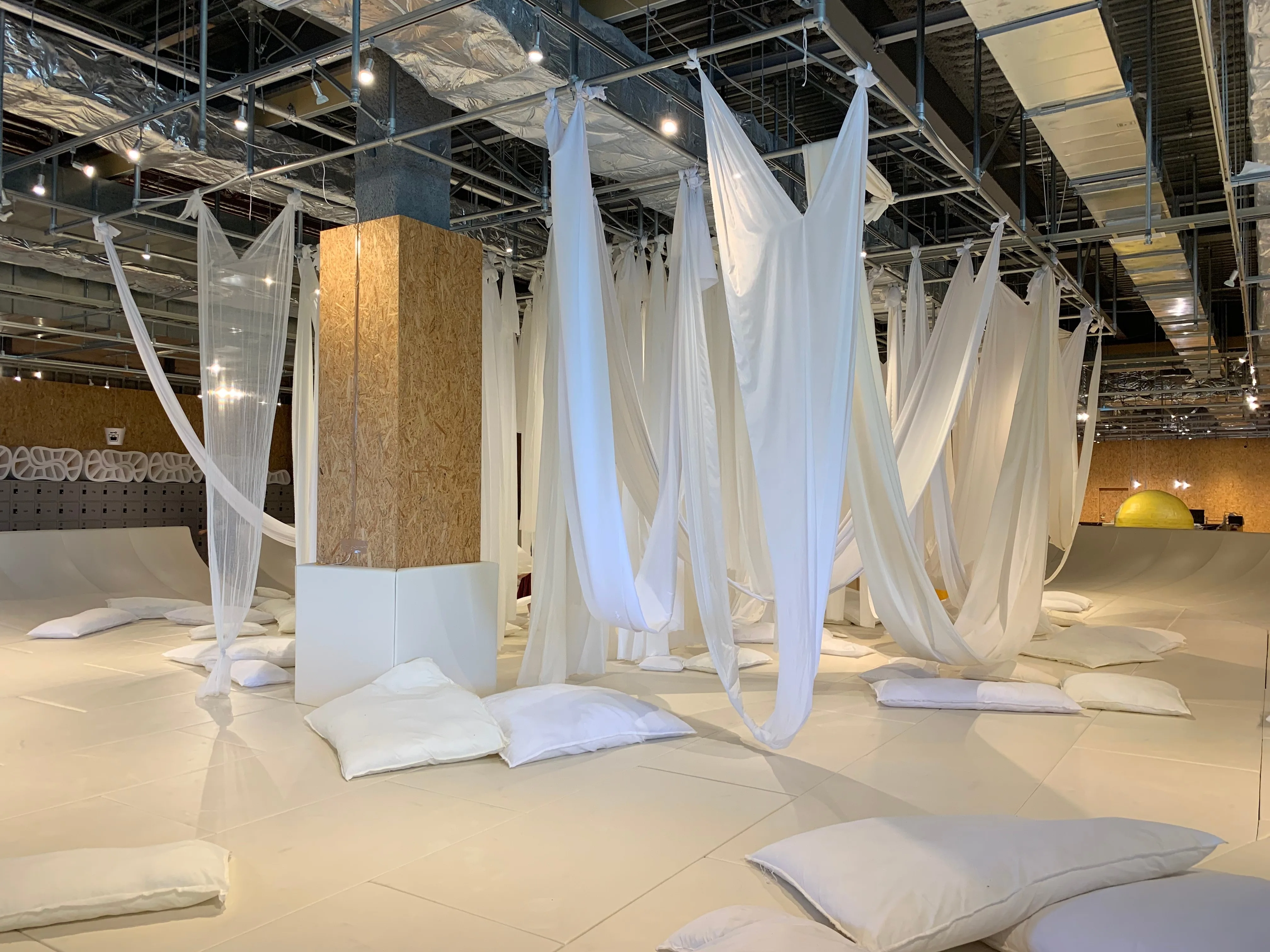 PLAY! MUSEUMのすぐ上にあるPLAY! PARKには先日、新たな「布」製の遊具が設置された。テントを作ったり、ダイブしたり、自由自在に遊べる空間は、子供たちも喜ぶこと間違いなしだ。