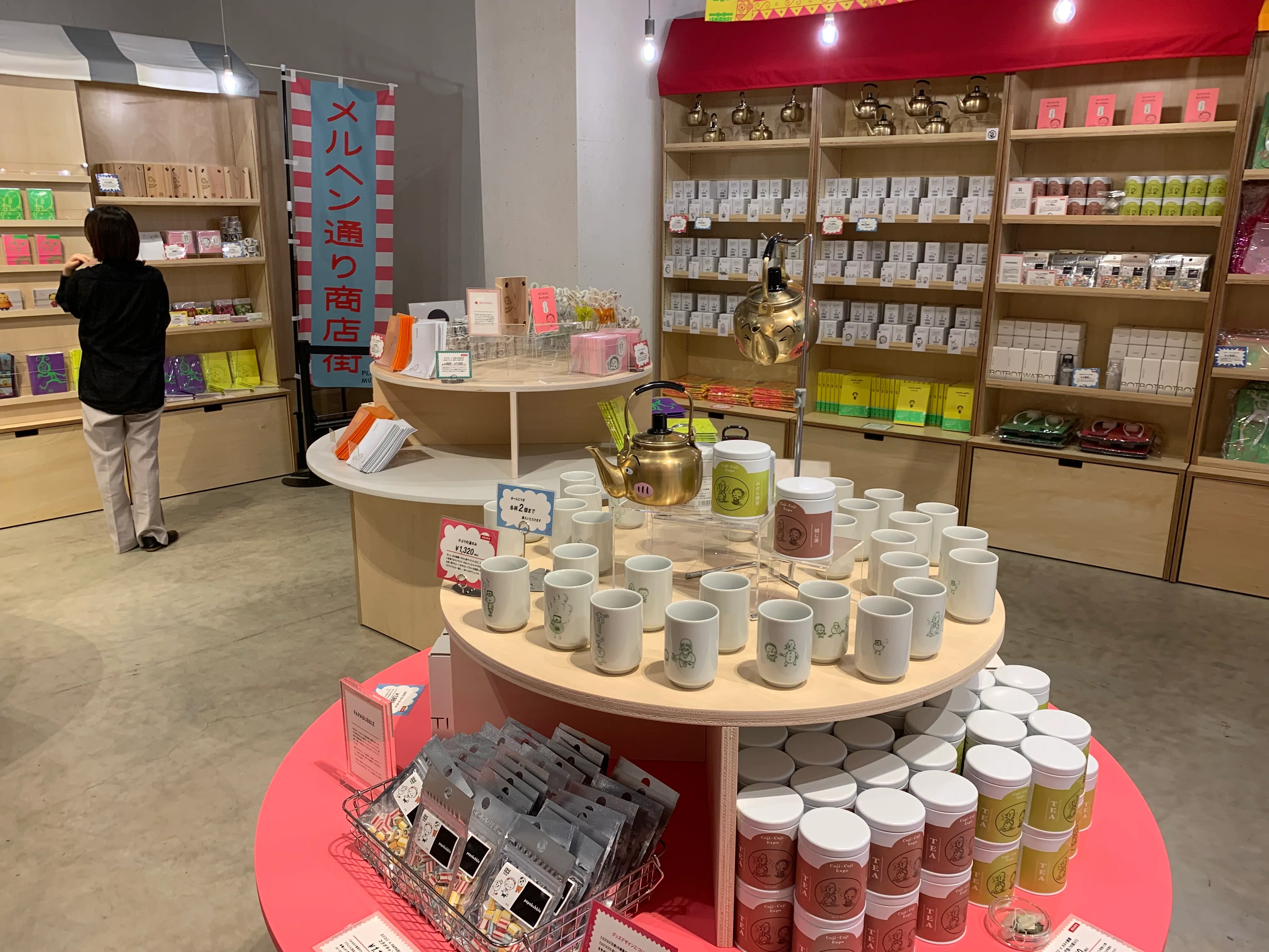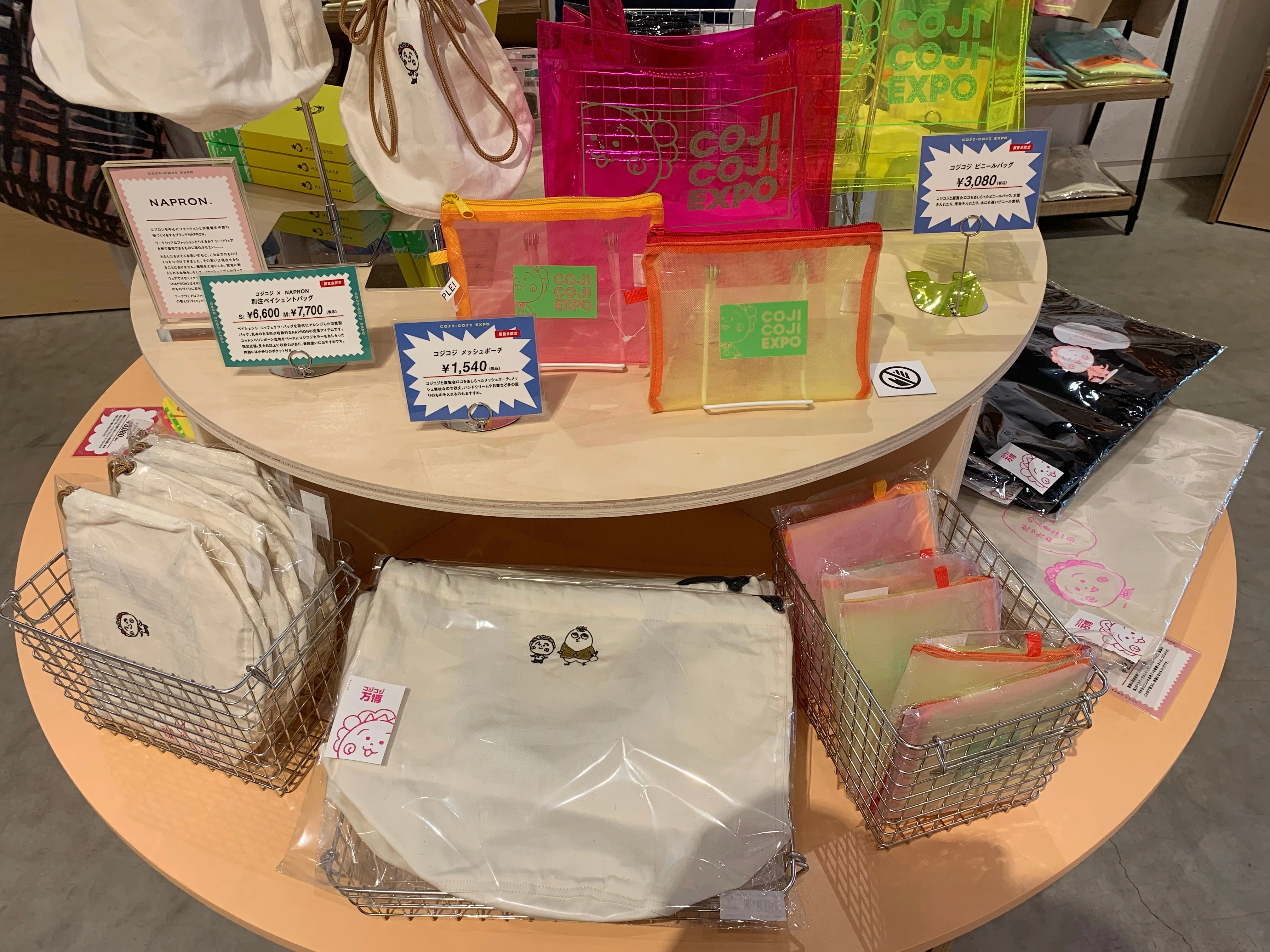 ショップはメルヘンの国の商店街へ大変身。「やかん君フィギュア」や、コジコジと次郎のTシャツなど魅力的なアイテムが揃う。