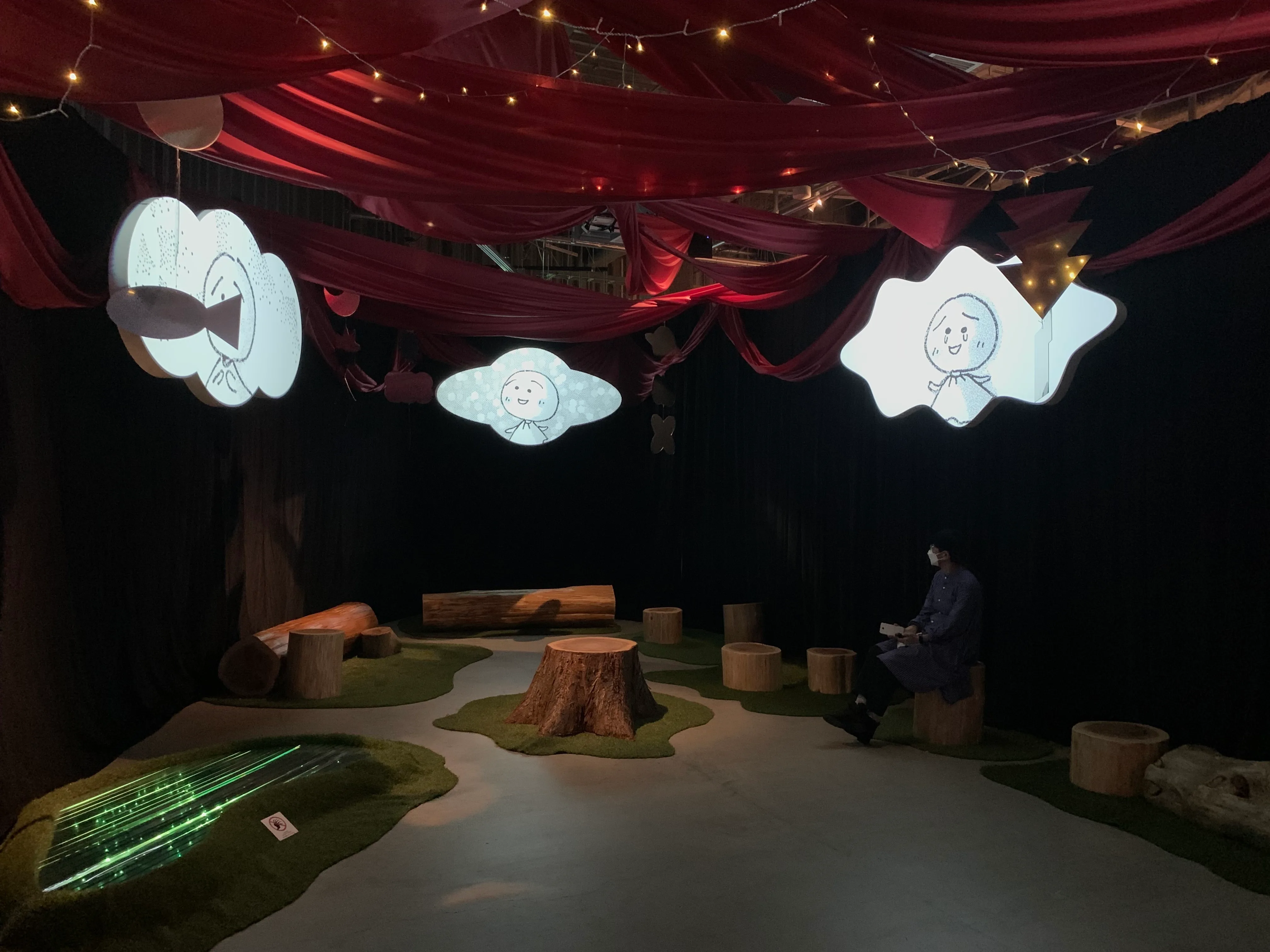 トンネルを抜けるとコジコジの世界の住人たちの複雑な胸の内を表したような「エモーショナルフレンズヒーリングゾーン」へ。暗室のなか、幻想的な音楽が広がる。