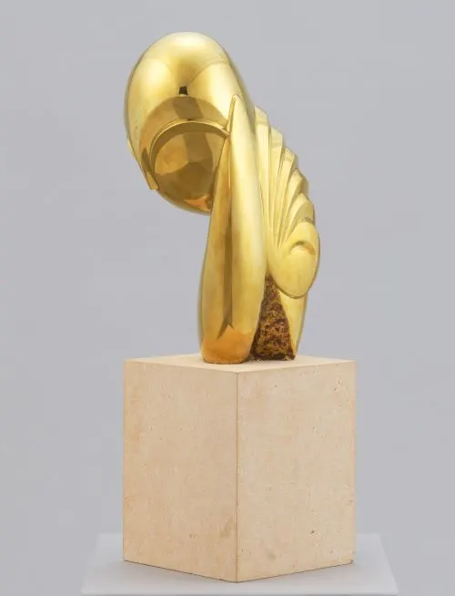 島本:表面を研磨したブロンズ作品は、1910年の《眠れるミューズ》が最も早い作例だと考えられます。そのときは、2点制作してもう片方に伝統的な彩色を施し、自分の作品のイメージに合う効果は光る仕上げとマットな彩色のどちらが良いかの見極めを行ったようです。その後、ブロンズ作品は基本的に磨くようになります。