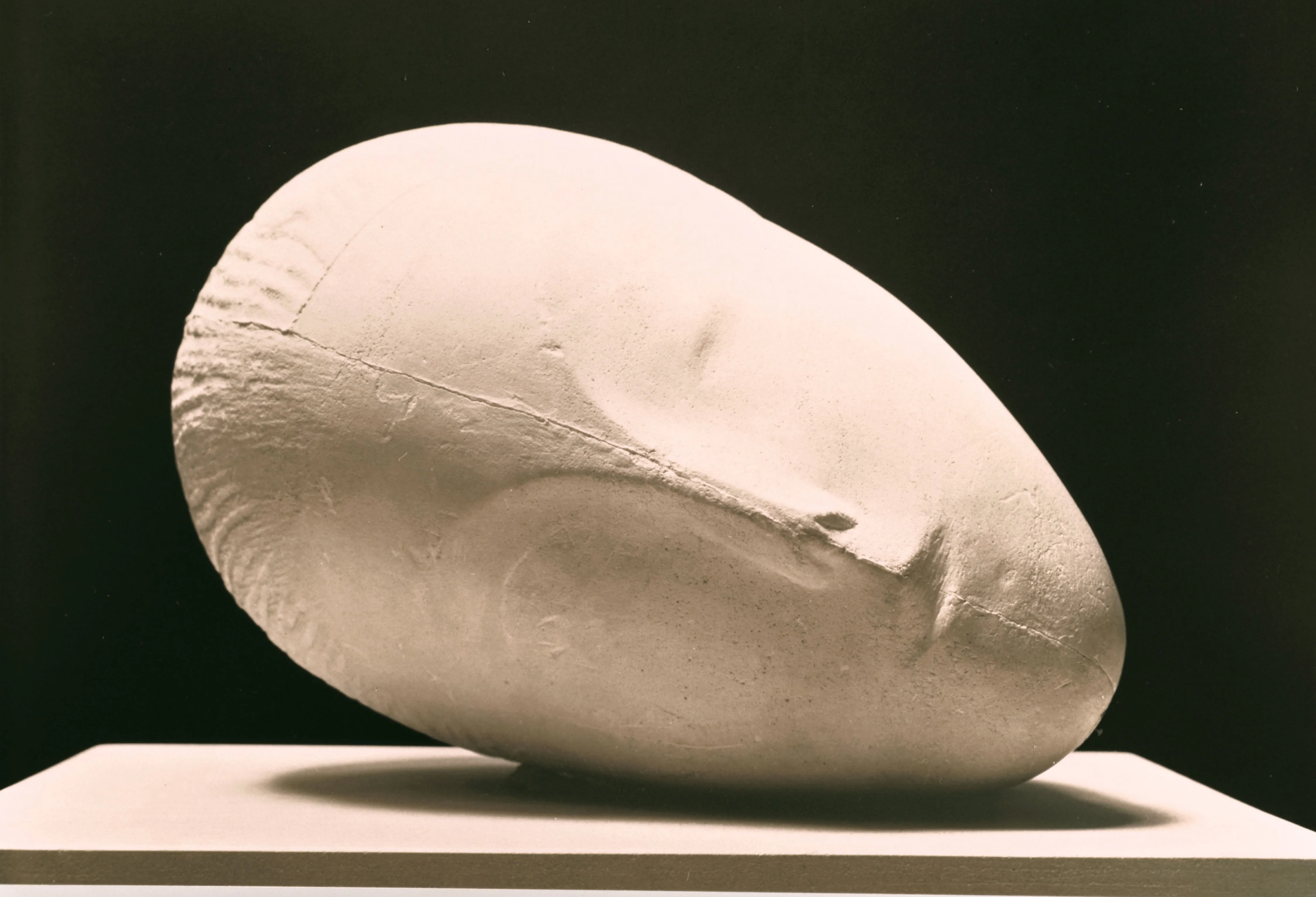 島本:卵型の源流とも言える《眠る幼児》は貴重な作品です。モデルは1歳の幼い子供で、横たわる頭部の右側の頬を平らにしているので、寝かせて展示できるんですね。当時の通念として彫像は垂直的なものと考えられ、そのために台座が必要でした。でも本作は台座なしにそのまま置いて鑑賞できます。ブランクーシが行った台座と彫刻の関係性の更新は、20世紀美術において革新的でした。台座を必要としない作品は、当館が所蔵する《接吻》もそうです。