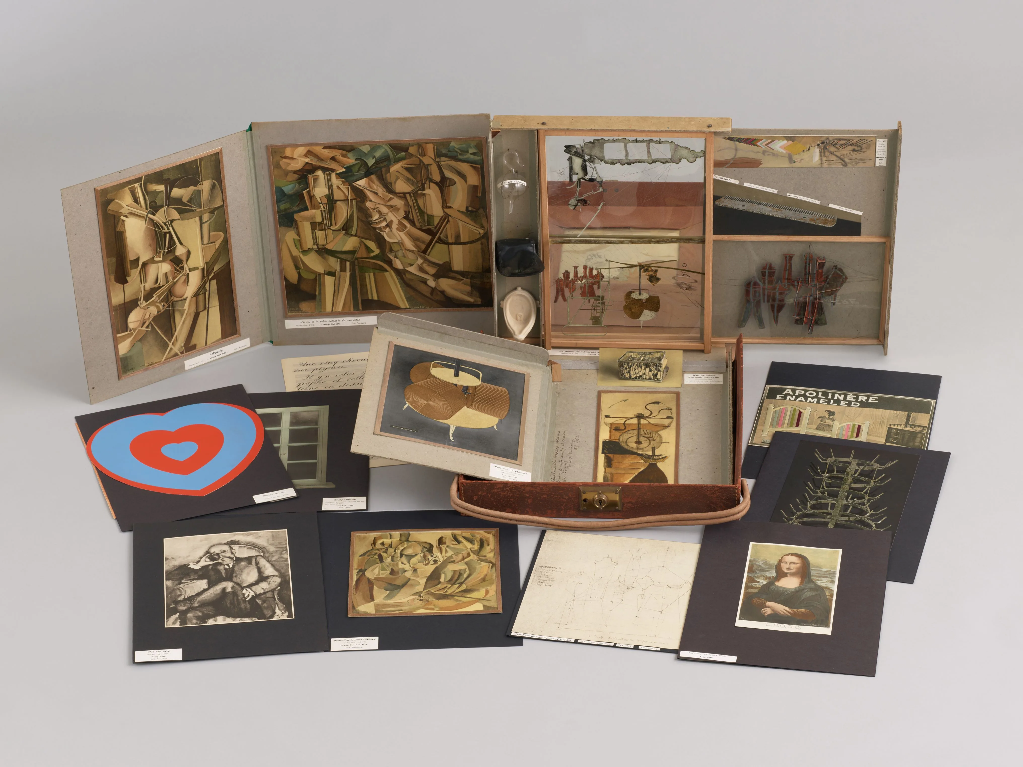 エージェント(代理人)、キュレーター的なかたちでデュシャンはブランクーシに関わり、関係は生涯続きました。ご存じのようにデュシャンは自身の絵画制作を放棄しますが、他者の作品のキュレーションを創作のいわば代替物とみなし、意欲的に取り組んだのではないかと思います。本展ではその一例として、デュシャンが自作品のミニチュアの複製品や写真をカバンの中に詰めた《トランクの箱》シリーズの1点を展示しています。