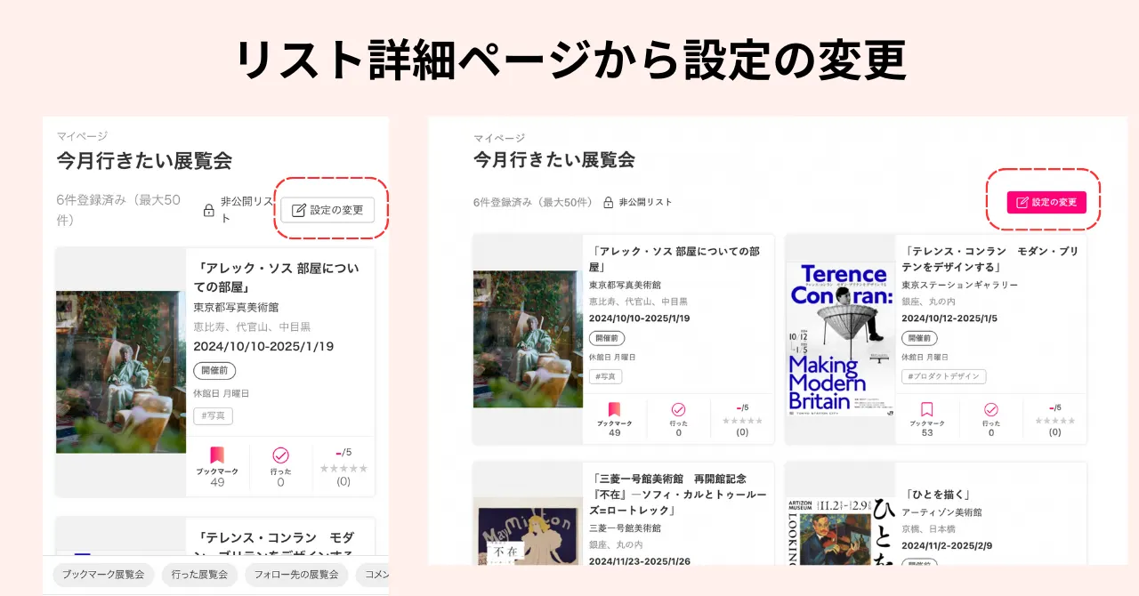 展覧会を自分だけのリストを作って管理できる新機能「カスタムリスト」をリリースいたしました。