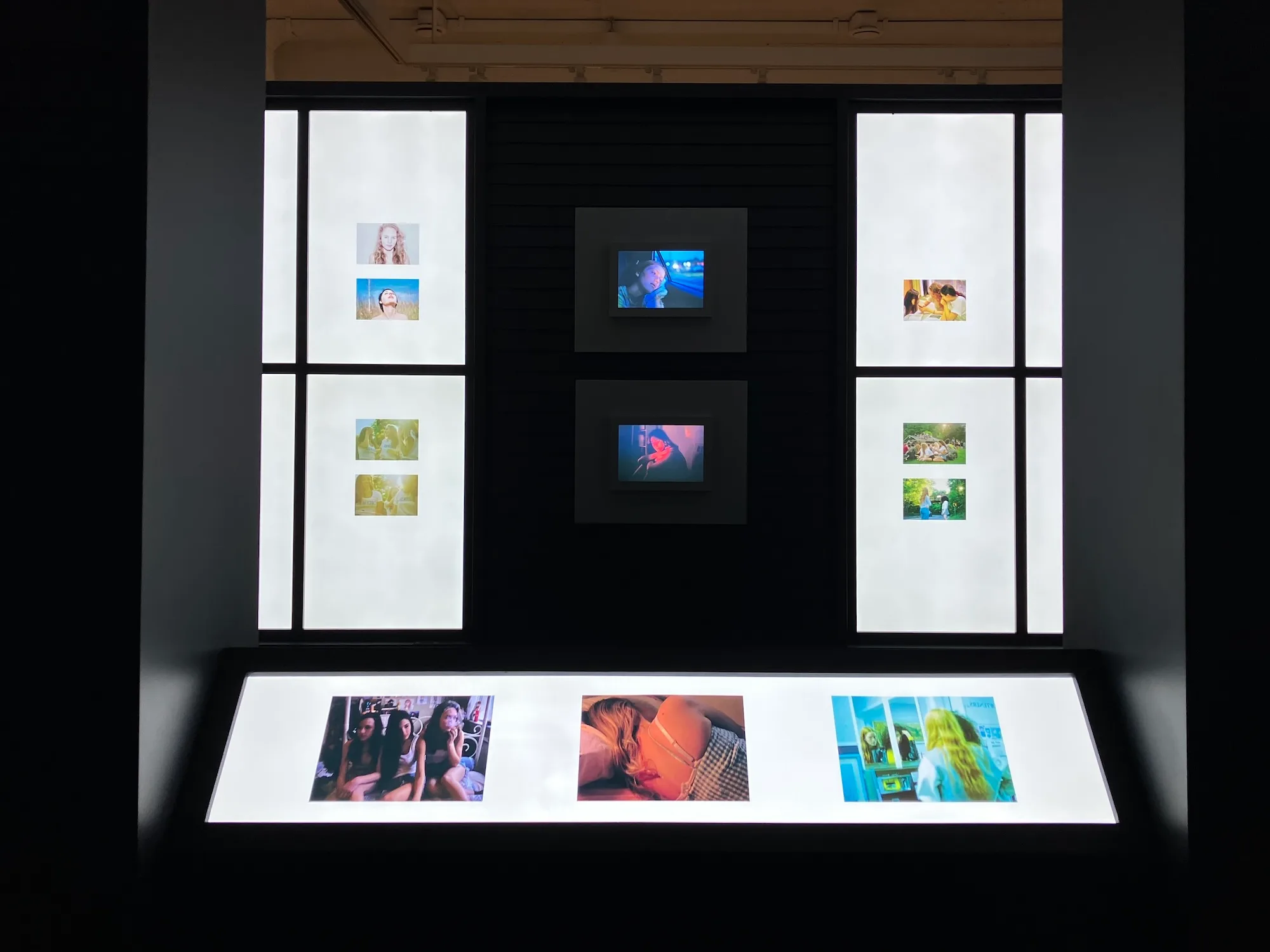 展示は3フロア、3つのチャプターで構成されています。最初の章「Becoming Petra」では、ダンサーになる夢を断たれ、15歳の頃に独学で写真を始めたコリンズの初期作品が展示されています。2010年代前半、寝室や学校、少女たちの身体といった、ティーンエイジャーの日常の断片を青くメランコリックに記録した「The Teenage Gaze」シリーズや、妹のアナらを被写体とした「Coming of Age」シリーズなど、生々しく親密な作品群が並びます。