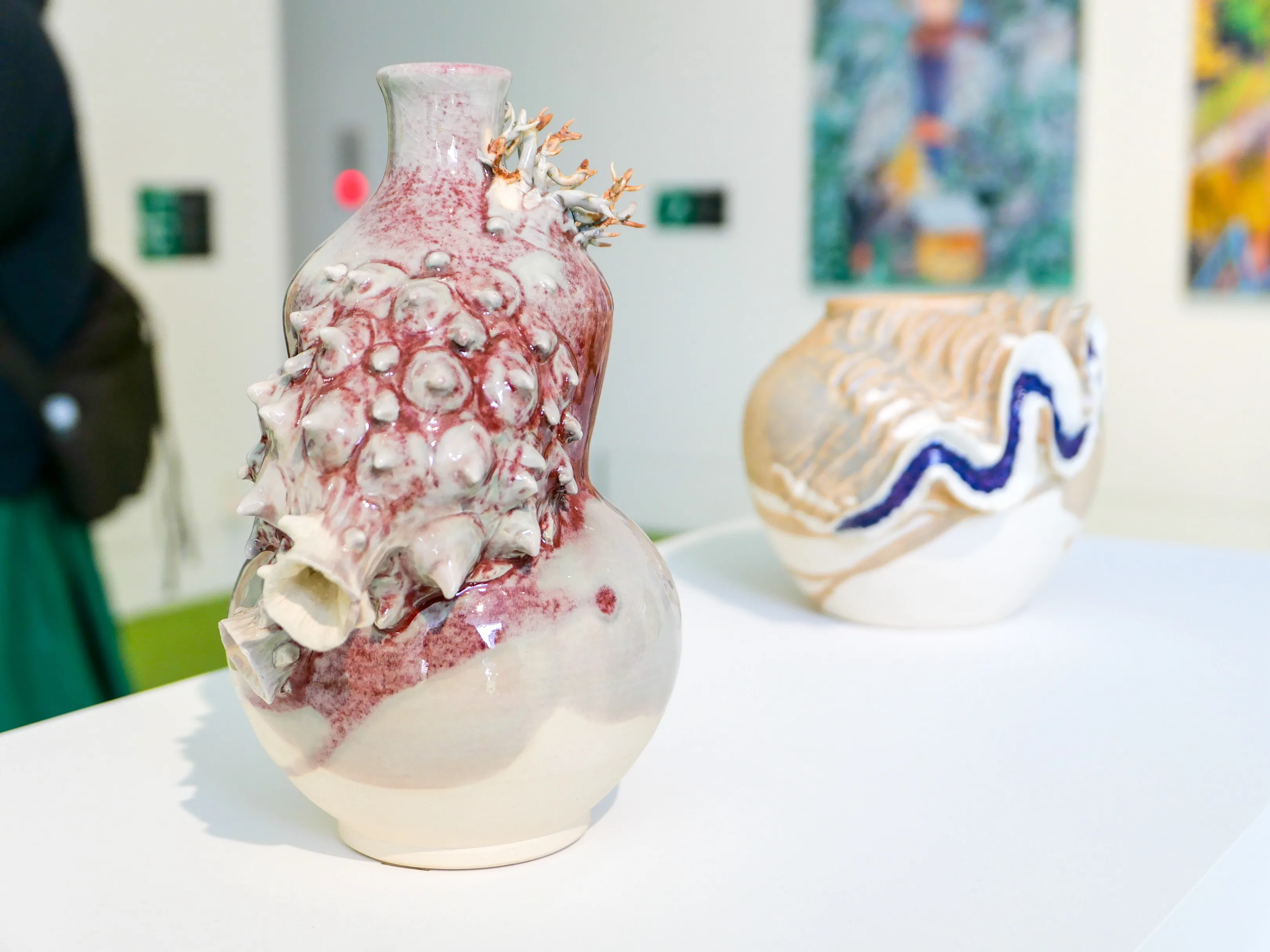 「Made in 青森 −自然と歴史の交差点」会場にて、左から小林エリカ、木村絵理子