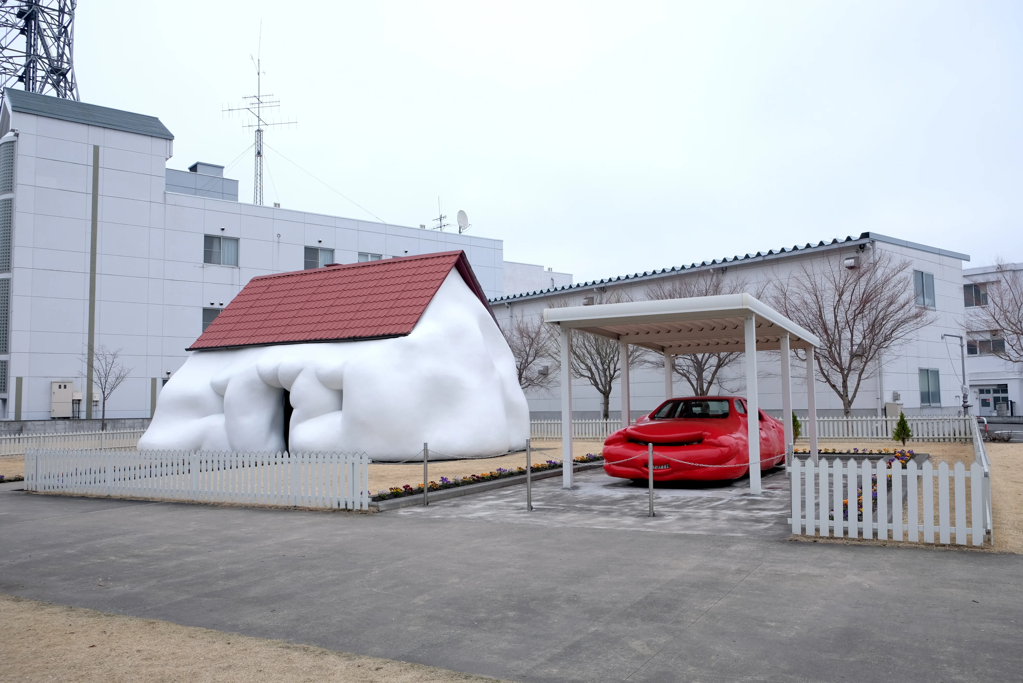 そして、会場を出て、美術館の向かいにある常設作品《ファット・ハウス》と《ファット・カー》は、日本でいちばん知名度の高いヴルムの作品だ。ヴルムは家や車を身体の延長としてとらえ、それらをむっちりと膨らんだ形で表現した。一見するとかわいらしく擬人化された2つの作品には、現代社会への皮肉も込められている。