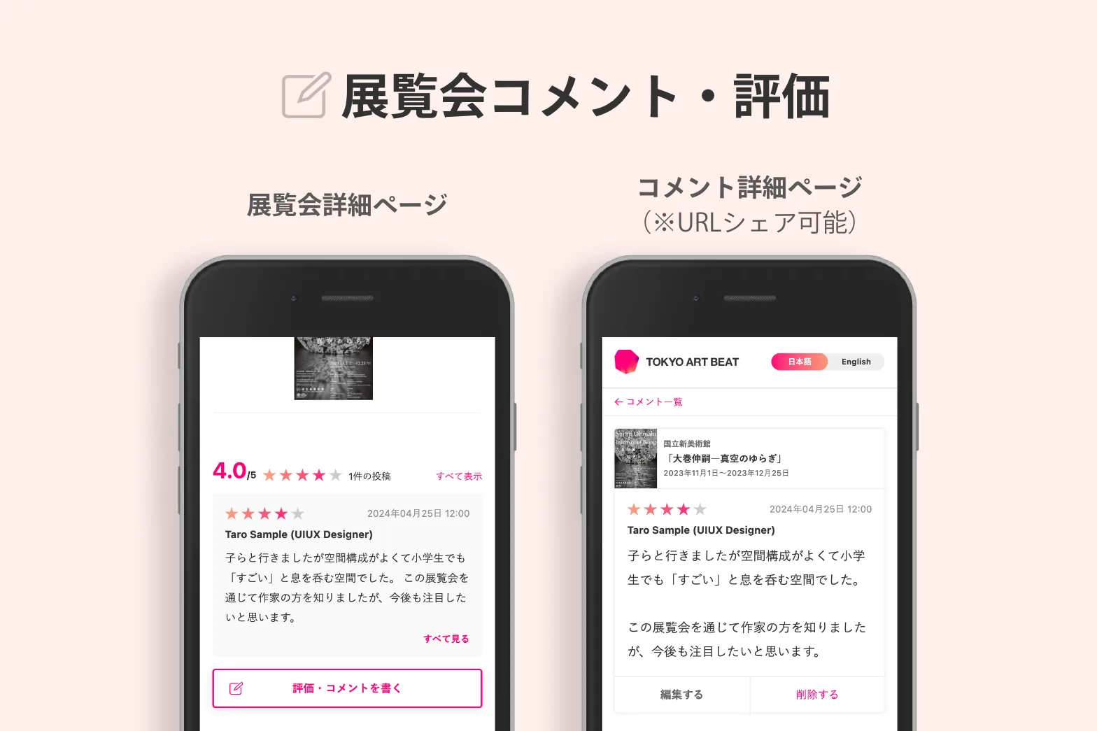 新機能「展覧会コメント・評価」の提供を開始いたしました(画像内のスクリーンショットは入力の参考例です)