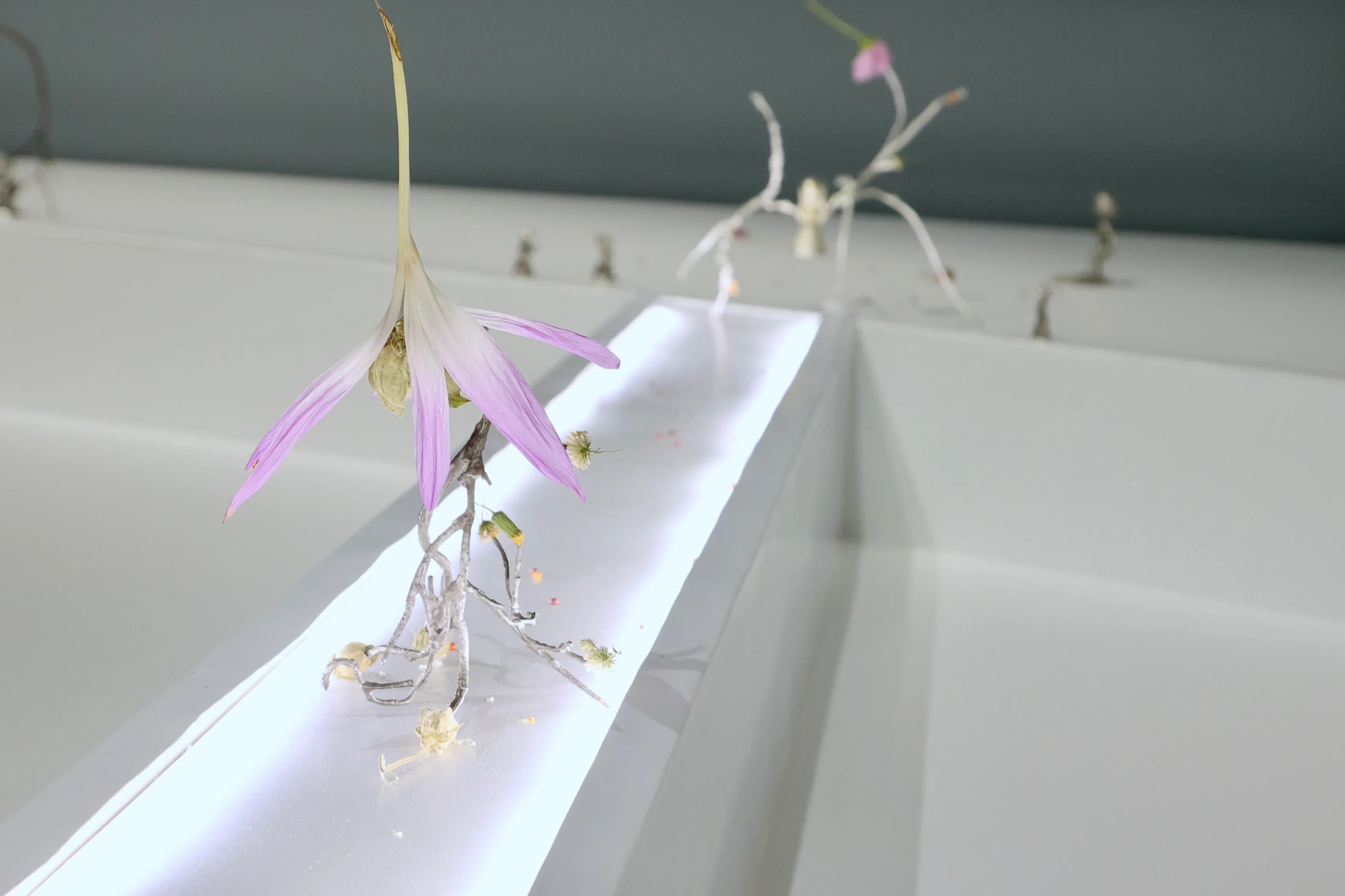 さらに、自身のセクシュアリティや作品の性質との関係性についても言及する。「私の作品は脆く、長持ちしない作品が多い。ギャラリーやコレクターの方などからはなるべく長く持つ強度のある作品を求められますが、私の作品の脆さは自分自身の人生の経験からきています。トランスジェンダーとしての自分は脆く儚いからです。そして、トランスジェンダーのコミュニティも強固な関係を築くのが難しく、いろんなものに影響されやすい。自ら命を断つ人も多い。時間が経つと枯れたり、バラバラになる作品には、そんな壊れやすさも反映されています」(丹羽)。