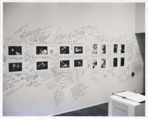このインスタレーションは、レズビアンによって撮影された女性のエロティックな写真群を壁に並べ、女性の観客にそれがどこで不快と感じるものになったかを線引きさせるものだった。