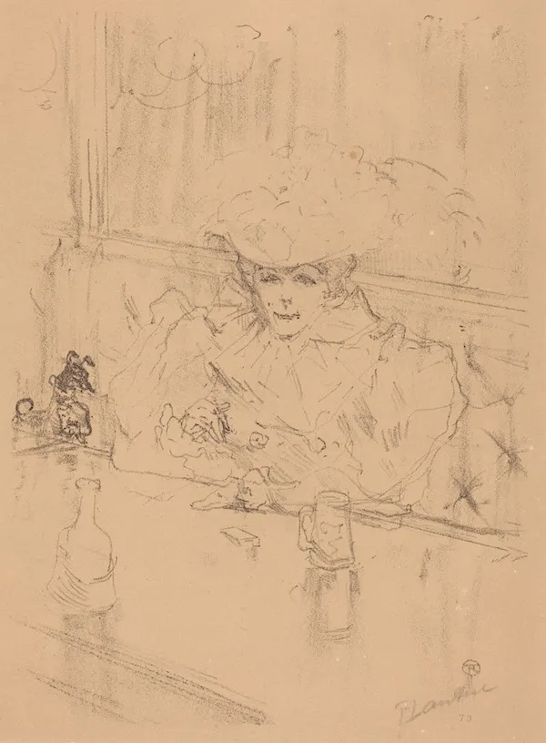 19世紀末の当時のパリにはレズビアンをはじめとする人々が集うブラッスリーが出来始めていた。ロートレックによる《ブラッスリー・アヌトン(Au le Hanneton)》(1898)はそうしたブラッスリーの一つであるアヌトンの主人を描いた作品だ。彼女は《大桟敷(La Grande Lodge)》(1897)では女優と二人で観劇する姿が描かれている。