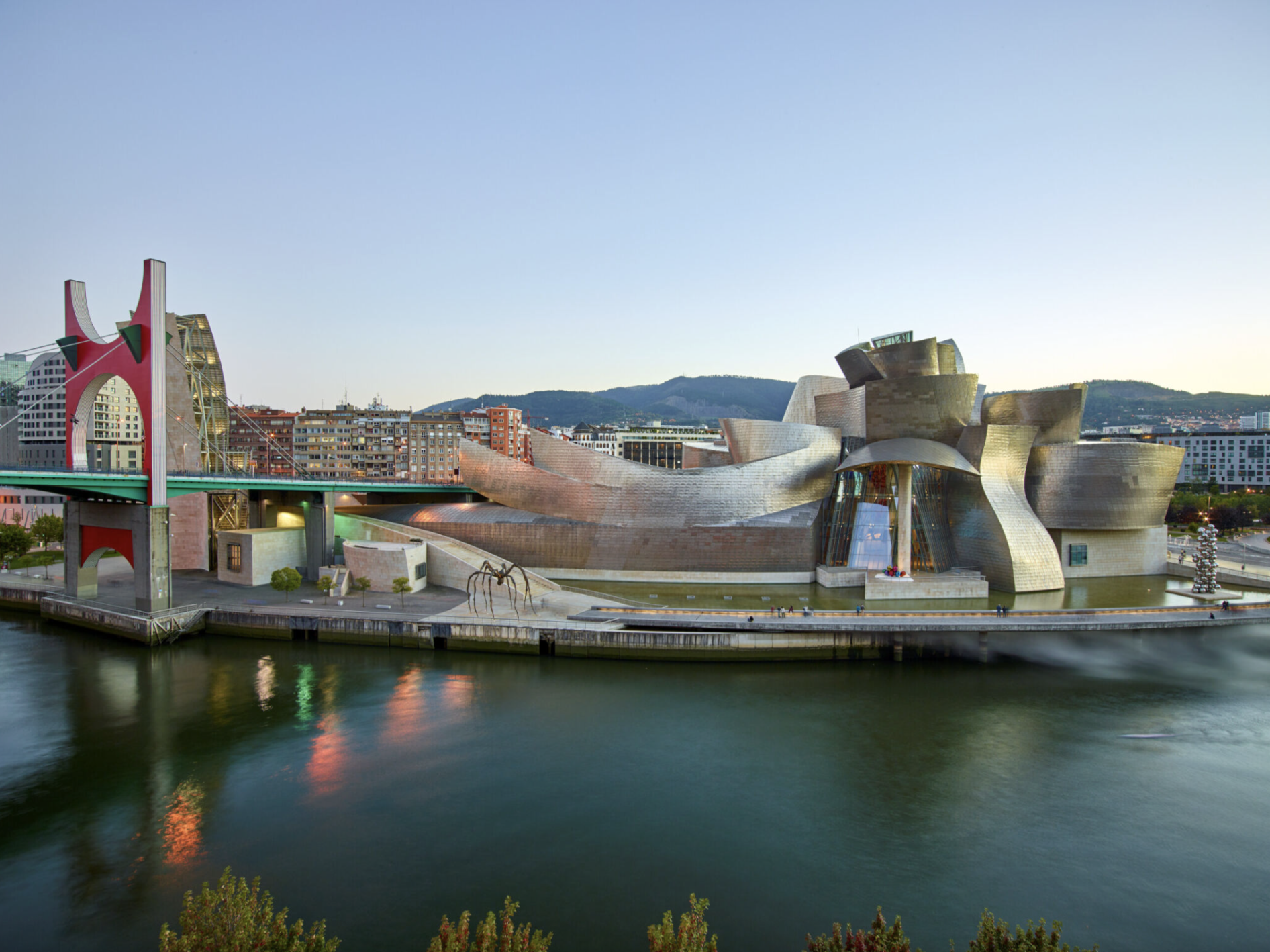 左:フランク・ゲーリー 出典:Wikimedia Commons 右:ビルバオ・グッゲンハイム美術館