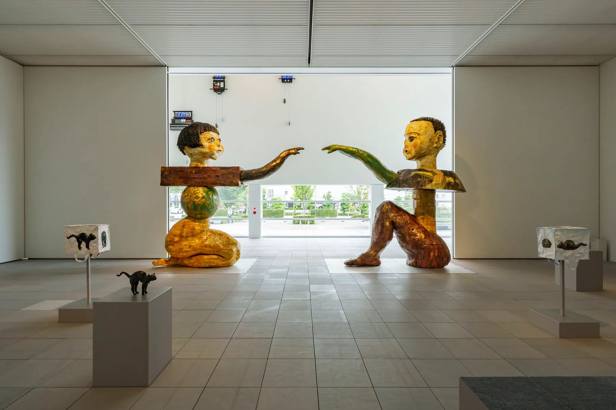 だが、同時に朝倉には大の愛猫家という一面もあった。本展は、彼の人物彫刻の代表作をほぼ時系列に紹介していくが、その歴史の「大きさ」を横切り、撹乱するかのように多くの猫の彫刻が登場する。そして展示後半からは、現代のアーティスト2組の作品が登場し、彫刻と芸術の「未来形」を示唆するような構成になっている。